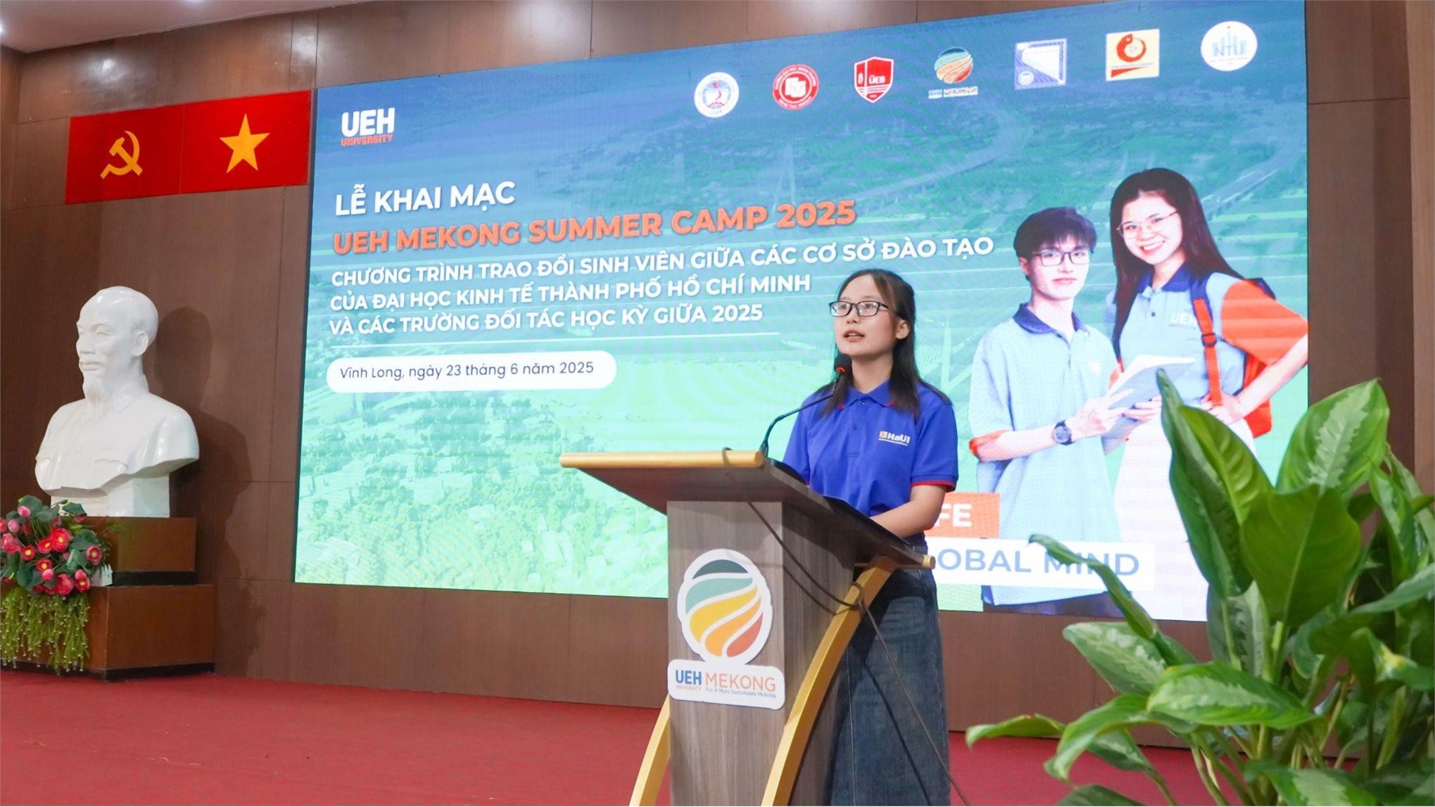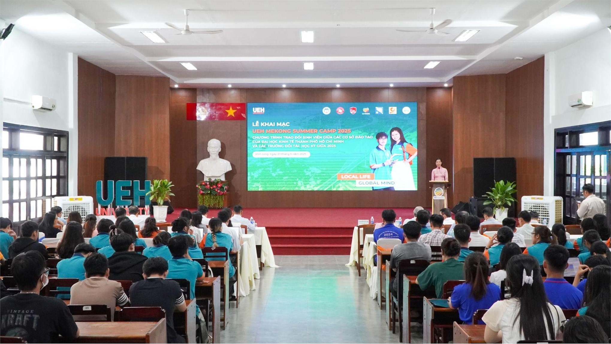 Sáng ngày 23/6/2025, Đại học Kinh tế Thành phố Hồ Chí Minh (UEH) đã tổ chức Lễ khai mạc Chương trình trao đổi sinh viên giữa các cơ sở đào tạo của Đại học Kinh tế Thành phố Hồ Chí Minh và các Trường đối tác. Chương trình “UEH Mekong Summer Camp 2025 - Local Life, Global Mind" được tổ chức từ ngày 23/6/2025 đến ngày 22/7/2025 tại UEH Mekong.
