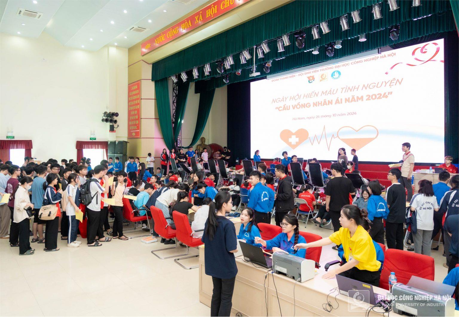Ngày 24/10/2024, Trường Đại học Công nghiệp Hà Nội (HaUI) cơ sở Hà Nam phối hợp với Hội Chữ thập đỏ tỉnh Hà Nam cùng Viện Huyết học – Truyền máu Trung ương tổ chức Ngày hội hiến máu “Cầu vồng nhân ái”, thu về hơn 600 đơn vị. Đây là sự kiện ý nghĩa, thể hiện tinh thần nhân văn vì cộng đồng của viên chức, người lao động và các bạn sinh viên HaUI trong hoạt động thiện nguyện, góp phần cứu sống nhiều người bệnh.