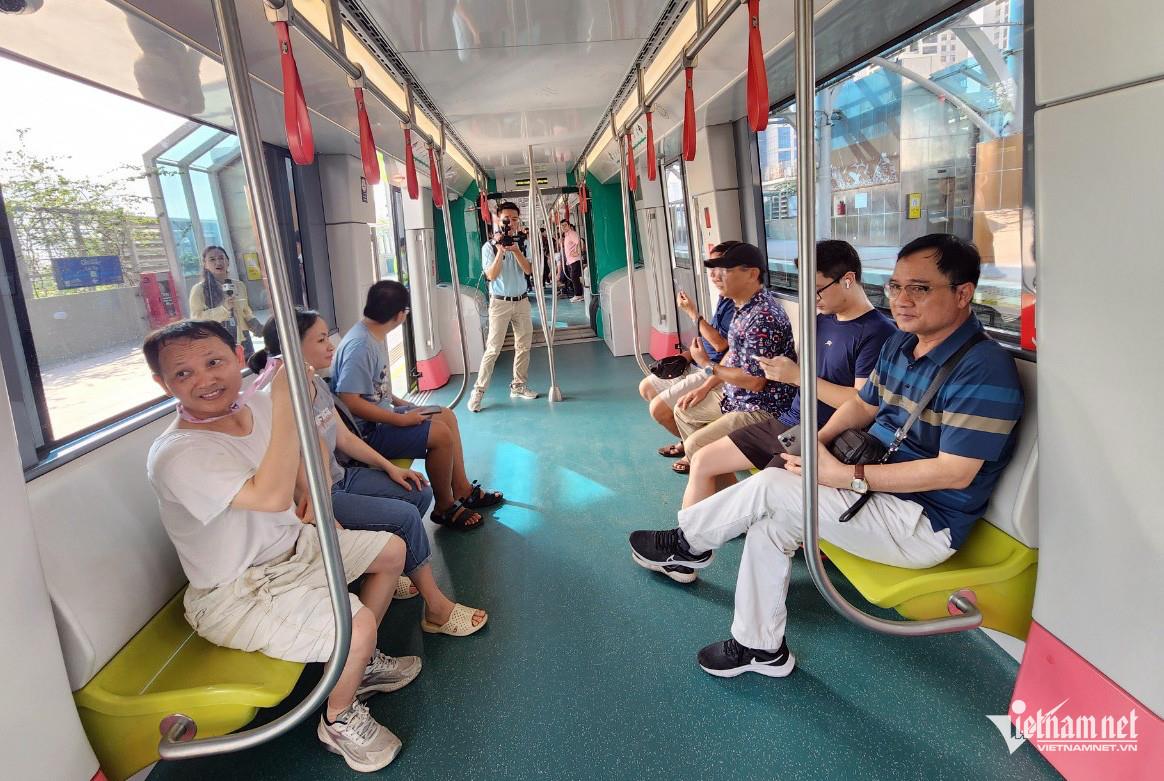 Người dân trải nghiệm chuyến tàu Nhổn - ga Hà Nội. Ảnh: Quang Phong