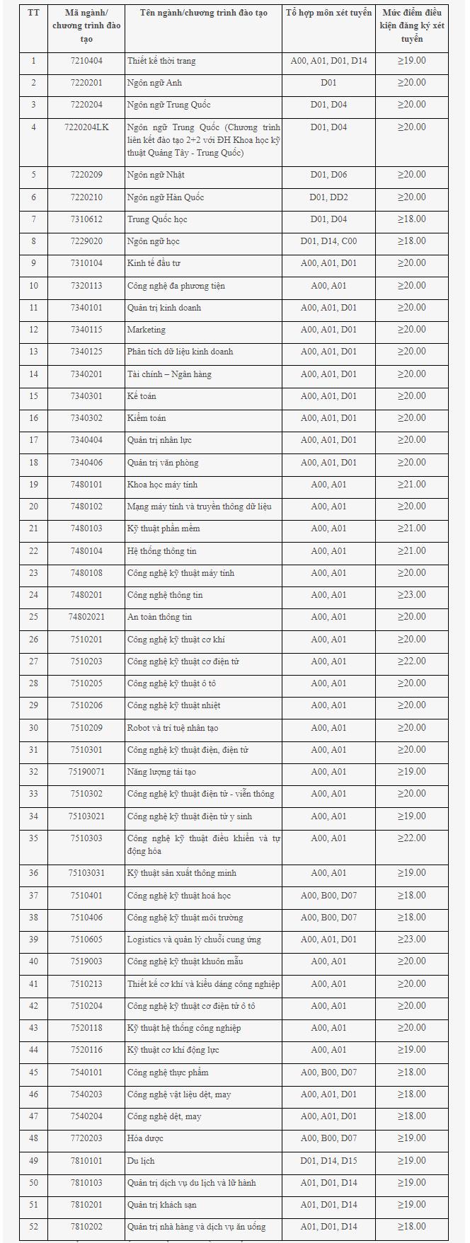 Cụ thể, mức điểm sàn nhận hồ sơ xét tuyển của Trường ĐH Công nghiệp Hà Nội năm 2024 như sau: