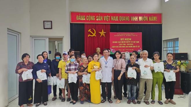Chị Lê Thuý Hằng (mặc áo dài vàng) tổ chức thăm khám và tặng quà cho người khuyết tật. (Ảnh: NVCC)