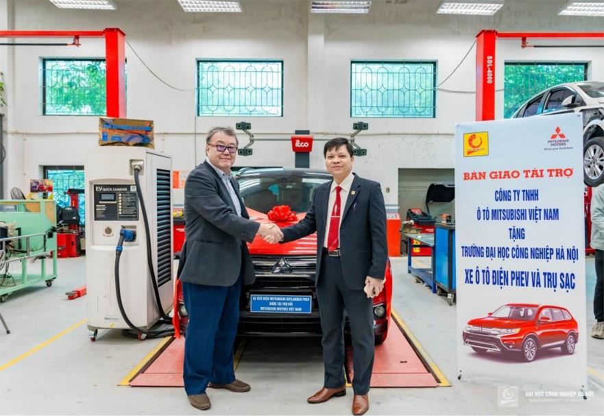 Ngày 22/01/2024 tại Hà Nội, Trường Đại học Công nghiệp Hà Nội đã nhận bàn giao thiết bị phục vụ nghiên cứu công nghệ xe ô tô gồm xe 1 ô tô điện Phev và 1 trụ sạc do Công ty TNHH Ô tô Mitsubishi Việt Nam tài trợ.