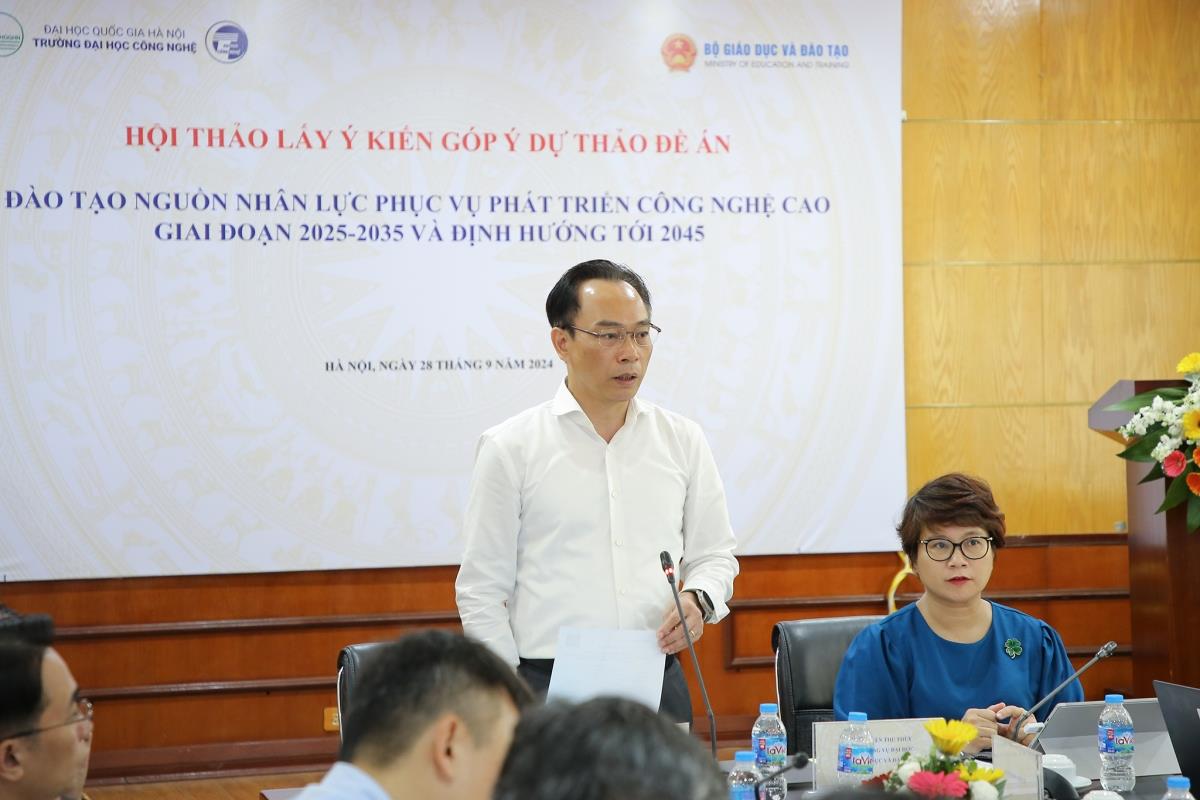 GS.TS Chử Đức Trình, Hiệu trưởng Trường ĐH Công nghệ - ĐH Quốc gia Hà Nội khẳng định: Dự thảo Đề án đào tạo nguồn nhân lực phục vụ phát triển công nghệ cao giai đoạn 2025-2035 và định hướng tới năm 2045 là một công trình được xây dựng công phu và toàn diện.