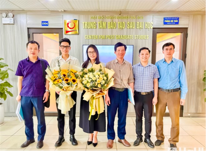 Niềm vui trong ngày bảo vệ thành công Đồ án tốt nghiệp của cựu học viên Trần Thị Nhất - ngành Thạc sĩ Cơ điện tử, HaUI.