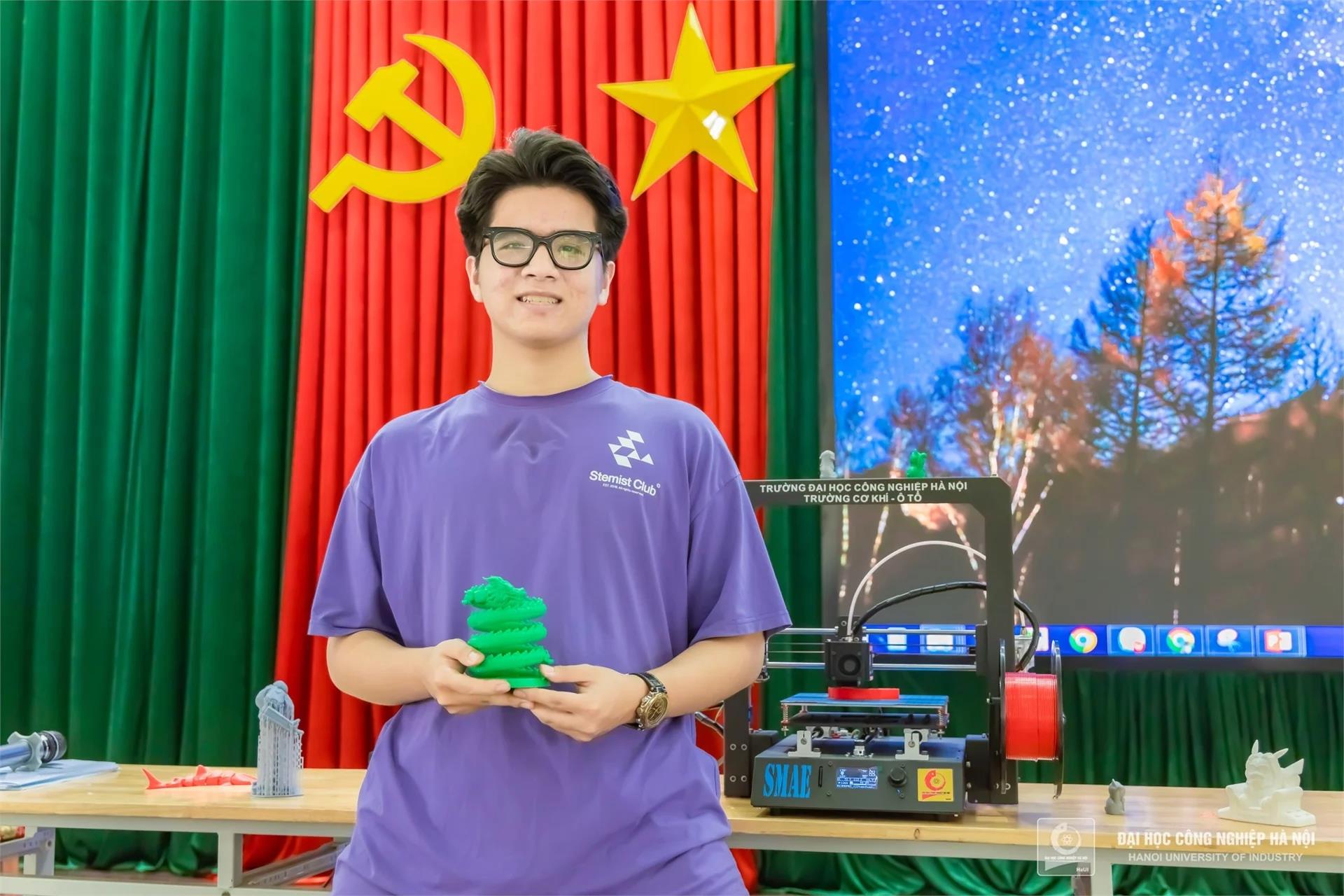 Làm quen với phần mềm, tạo dựng các chi tiết từ máy in 3D, Đỗ Trường Giang và Hoàng Xuân Lộc – Học sinh Trường THPT Quốc Oai, Hà Nội đã hiểu rõ hơn về ngành Công nghệ Kỹ thuật cơ khí, ngành Thiết kế Cơ khí và Kiểu dáng công nghiệp.