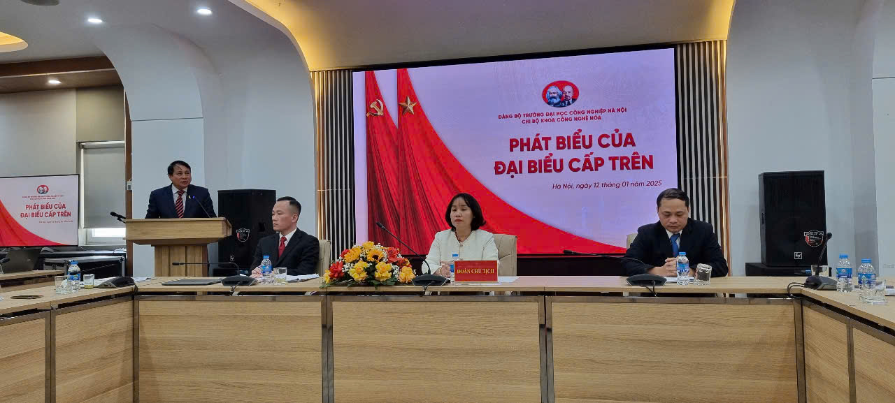 Thực hiện kế hoạch của Đảng bộ Trường Đại học Công nghiệp Hà Nội về việc tổ chức đại hội các chi bộ trực thuộc nhiệm kỳ 2025 – 2027, Sáng ngày 12/01/2025, Đại hội Chi bộ Khoa Công nghệ Hóa đã thành công tốt đẹp. Rất vinh dự cho Chi bộ Khoa Công nghệ Hóa đã được chọn làm chi bộ tổ chức Đại hội mẫu để rút kinh nghiệm cho các Đại hội của các Chi bộ tiếp theo.