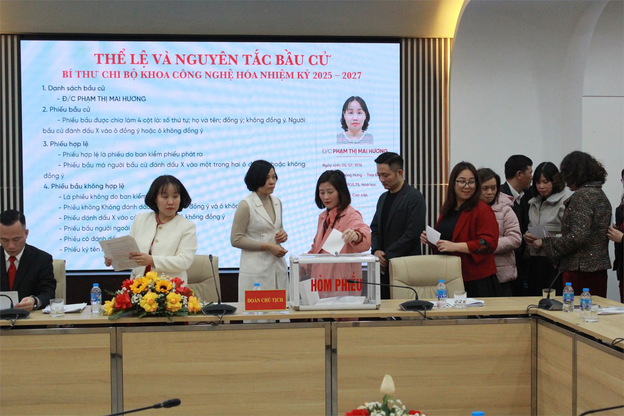 Với tinh thần dân chủ, trách nhiệm, kỉ cương và đoàn kết, Đại hội đã bầu Ban chi ủy gồm 3 đồng chí; bầu Bí thư; bầu Phó bí thư, bầu đại biểu đi dự Đại hội Đảng bộ Nhà trường nhiệm kỳ 2025-2030. Các đồng chí Ban chi ủy khóa cũ đã tái đắc cử với số phiếu rất cao với các chức danh: