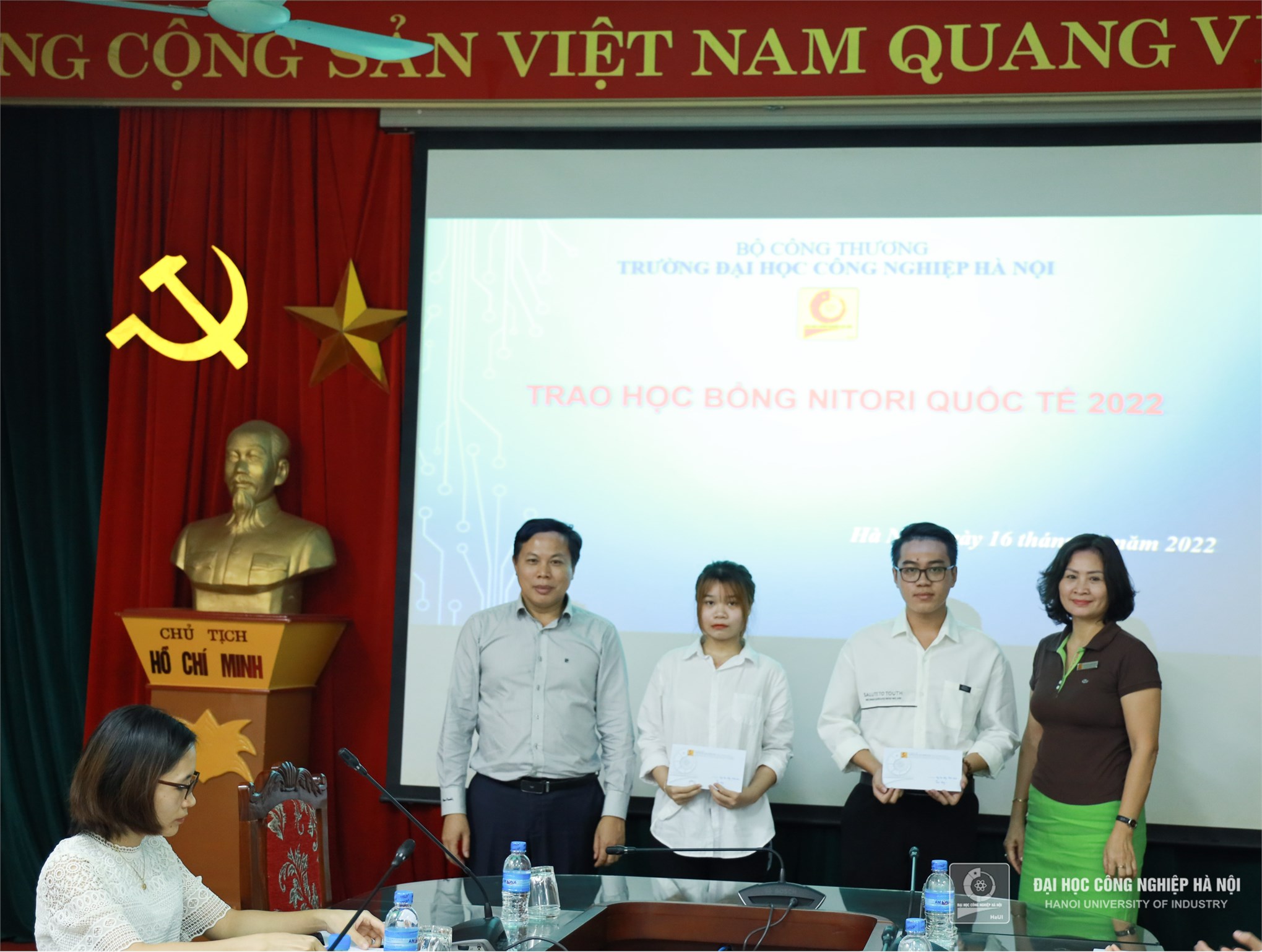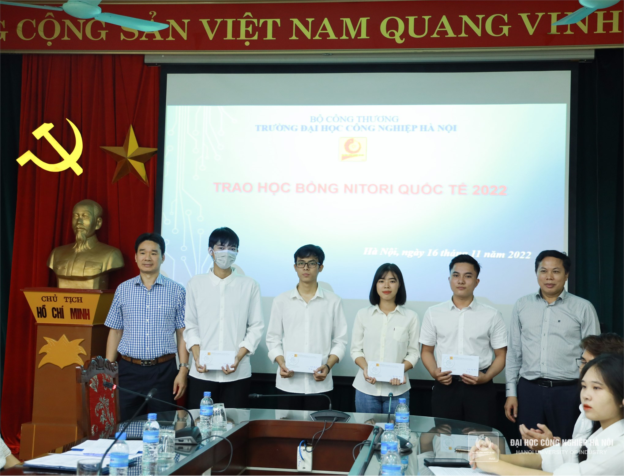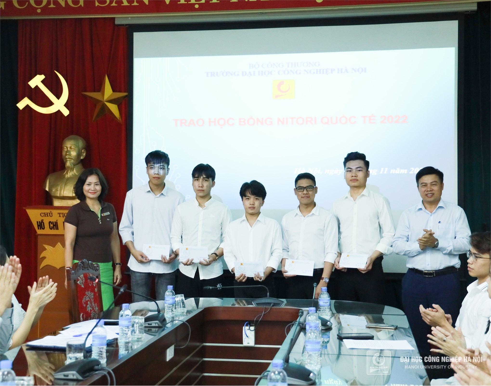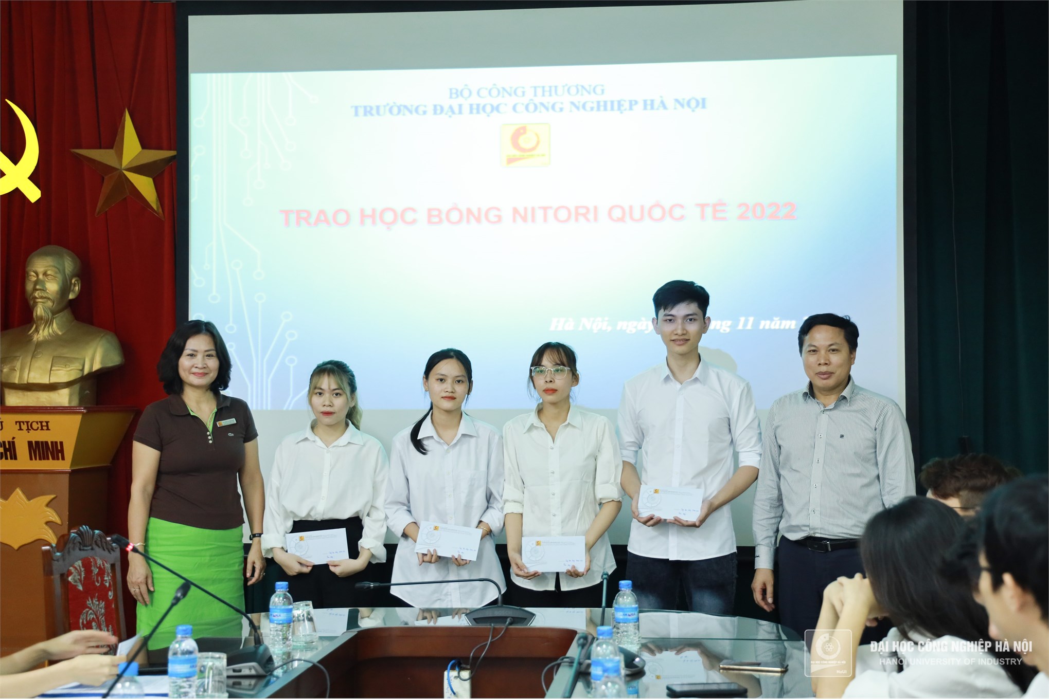 Chiều ngày 16/11, Đại học Công nghiệp Hà Nội tổ chức chương trình trao học bổng quốc tế Nitori 2022 cho 20 sinh viên đạt thành tích xuất sắc của các Khoa: Cơ khí, Điện, Điện tử và Quản lý kinh doanh, Kế toán – Kiểm toán và Công nghệ Hóa. Mỗi suất học bổng trị giá 13 triệu đồng.