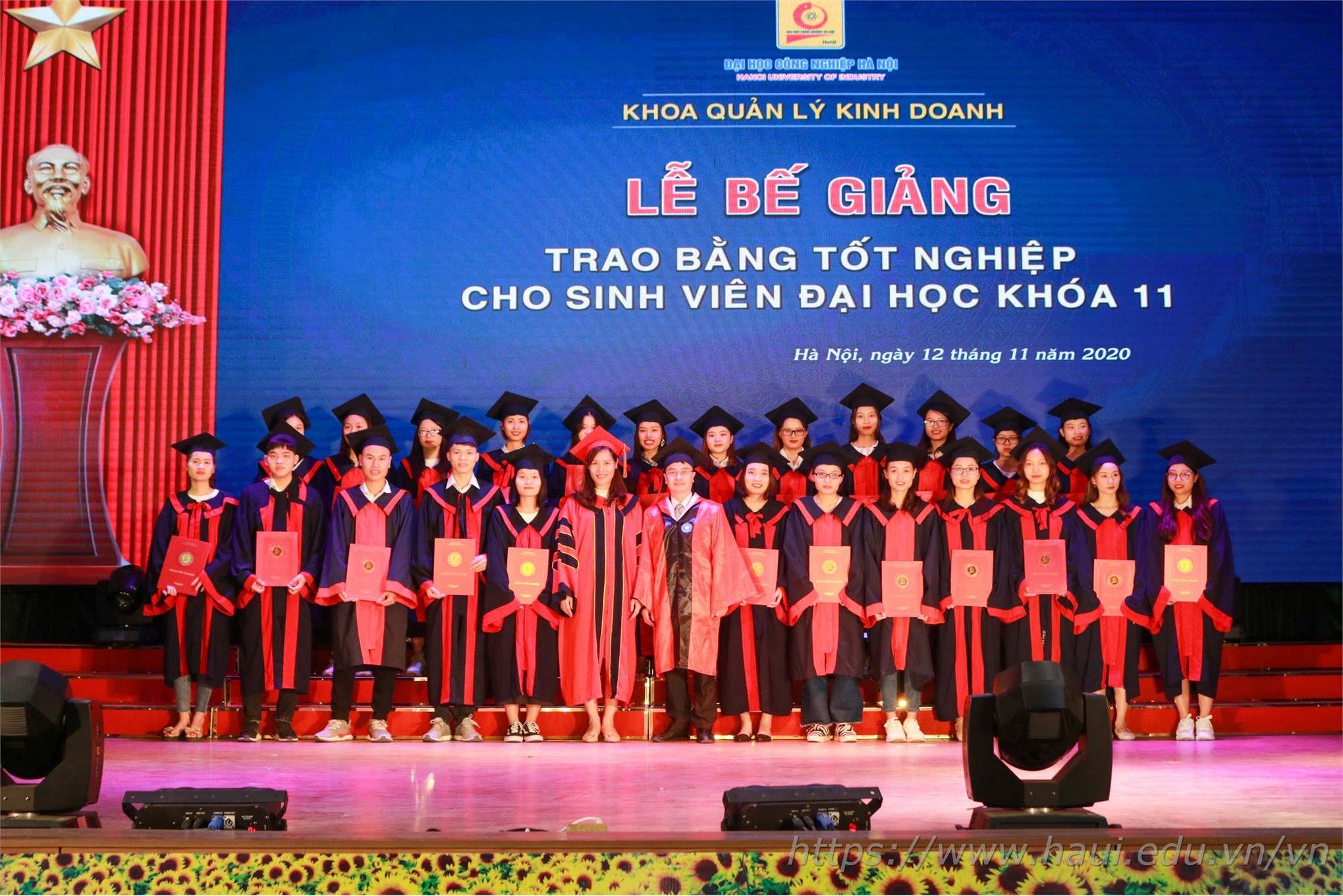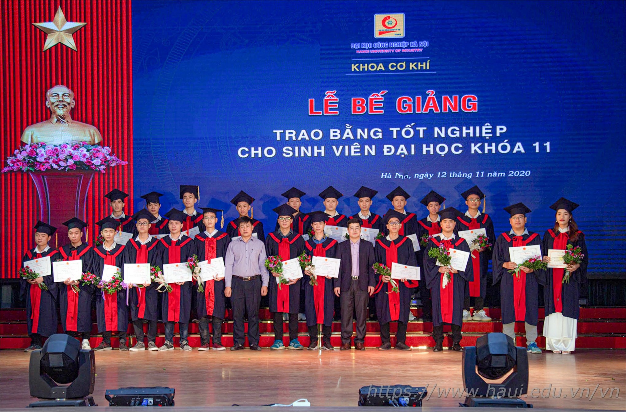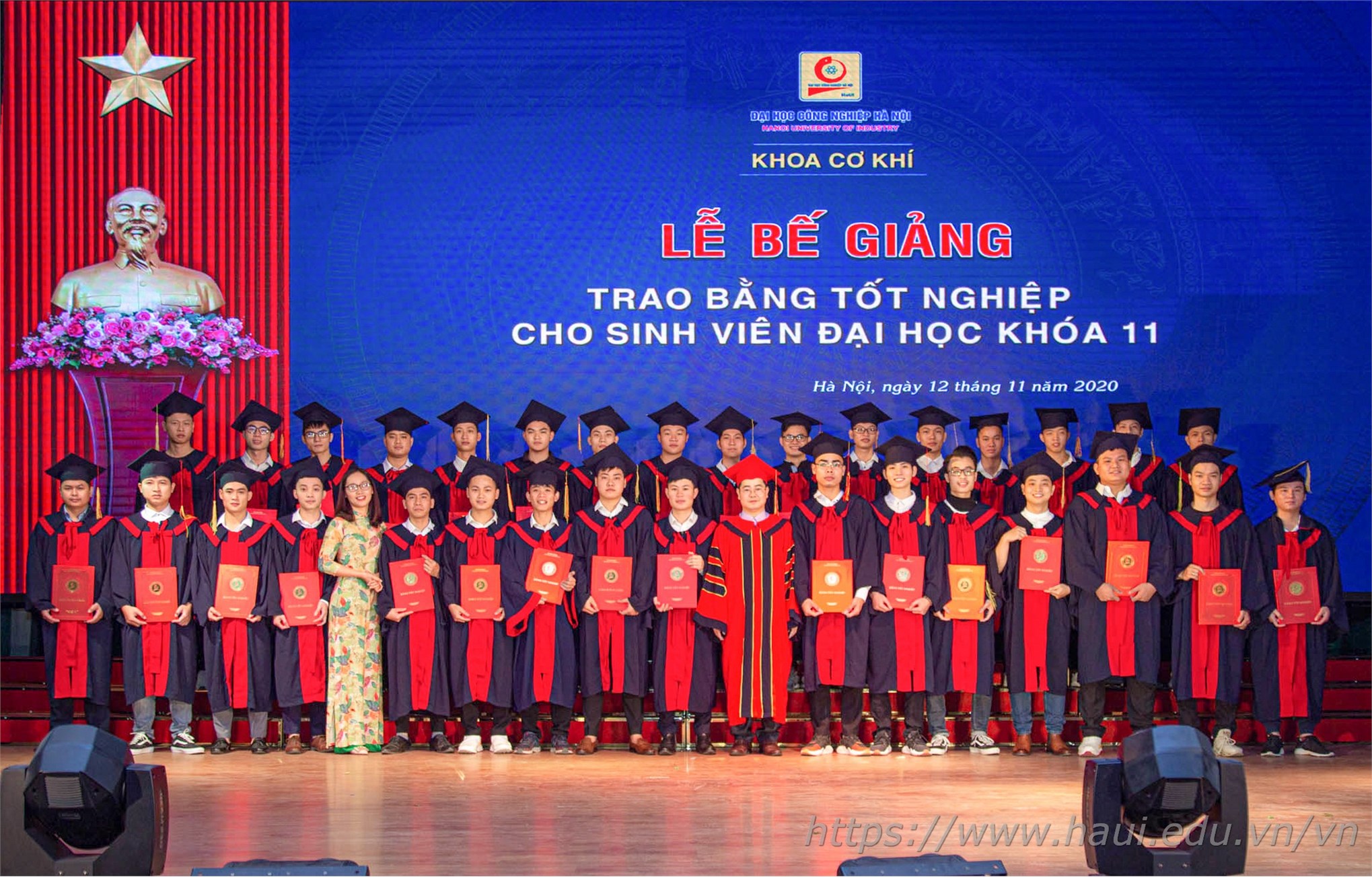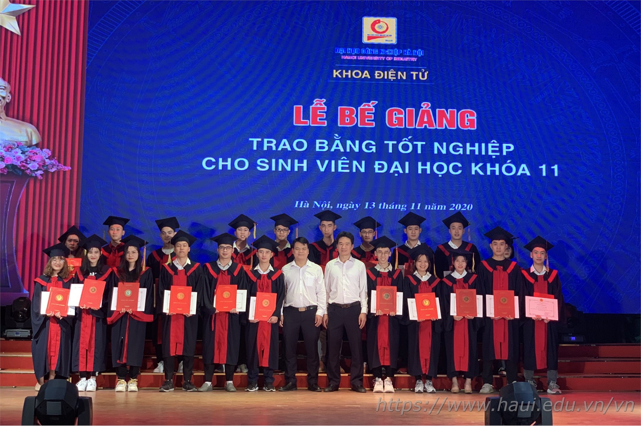 Từ ngày 12/11 – 14/11/2020, khắp sân trường và các hội trường lớn của ĐHCNHN tràn ngập sắc áo cử nhân cùng những nụ cười rạng rỡ trong ngày bế giảng và trao bằng tốt nghiệp. Tấm bằng cử nhân đỏ có đóng dấu ĐHCNHN không chỉ là minh chứng và kết quả cho 4 năm học hành chăm chỉ, nghiêm túc của các tân cử nhân dưới ngôi nhà chung HaUI, mà còn là hành trang để các em tự tin vững bước vào đời.