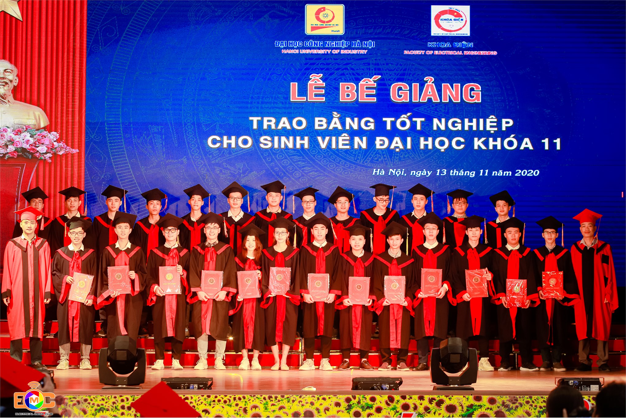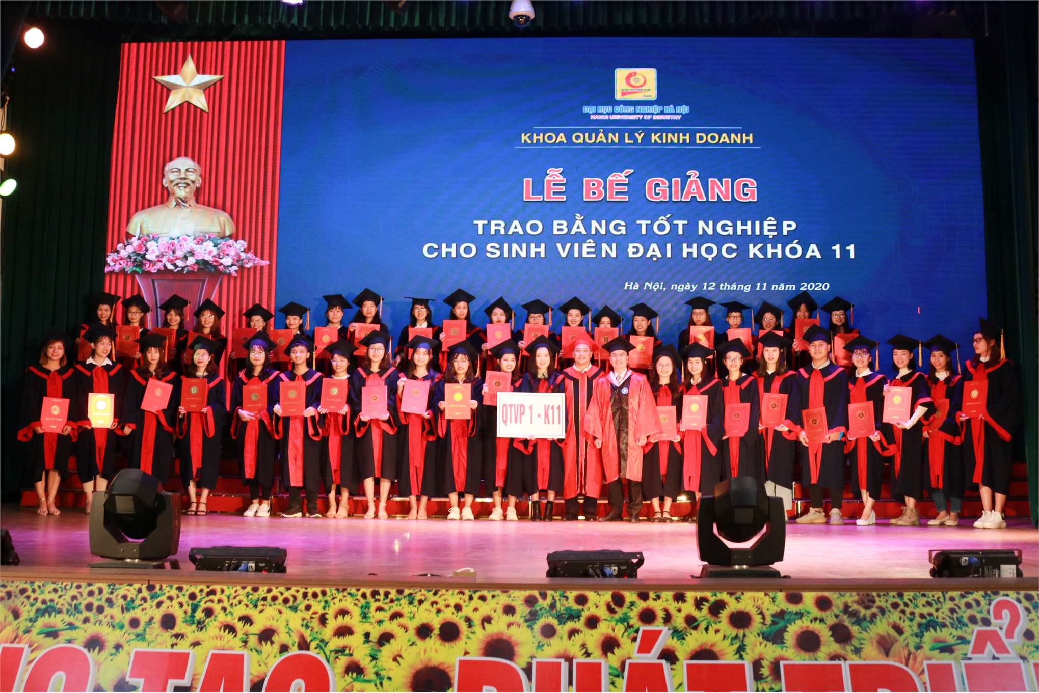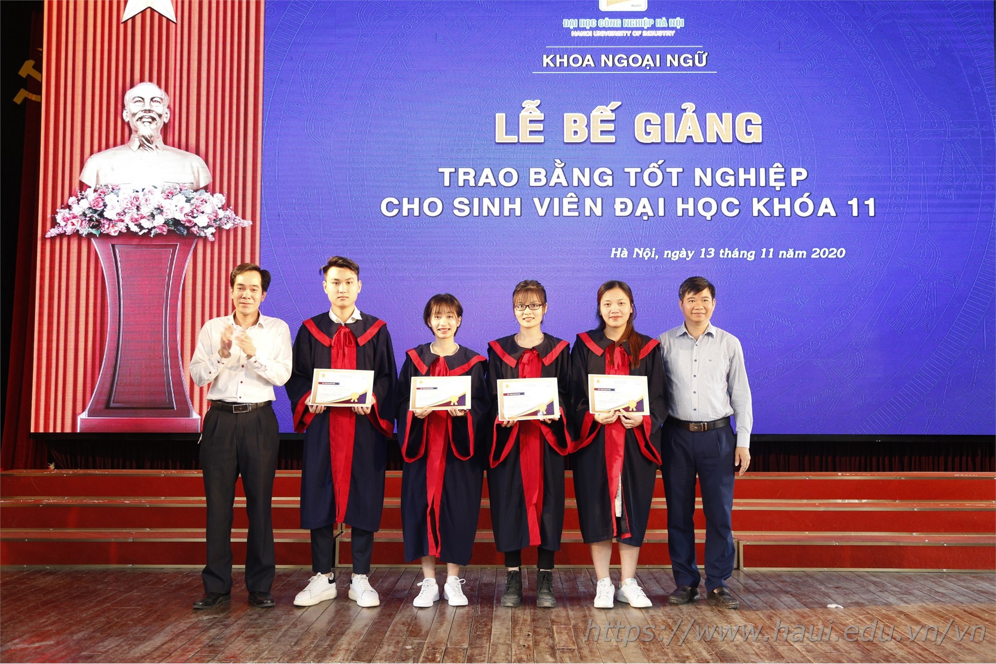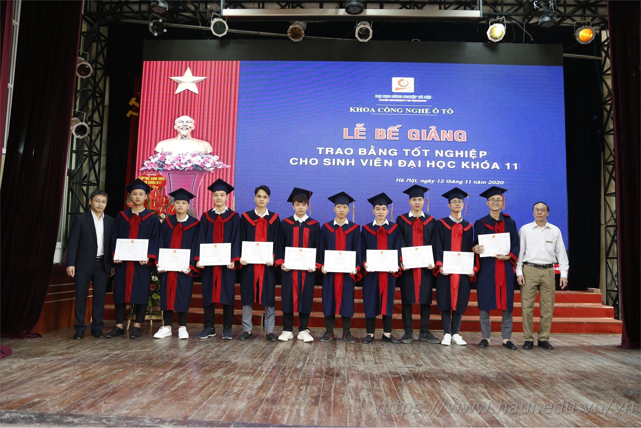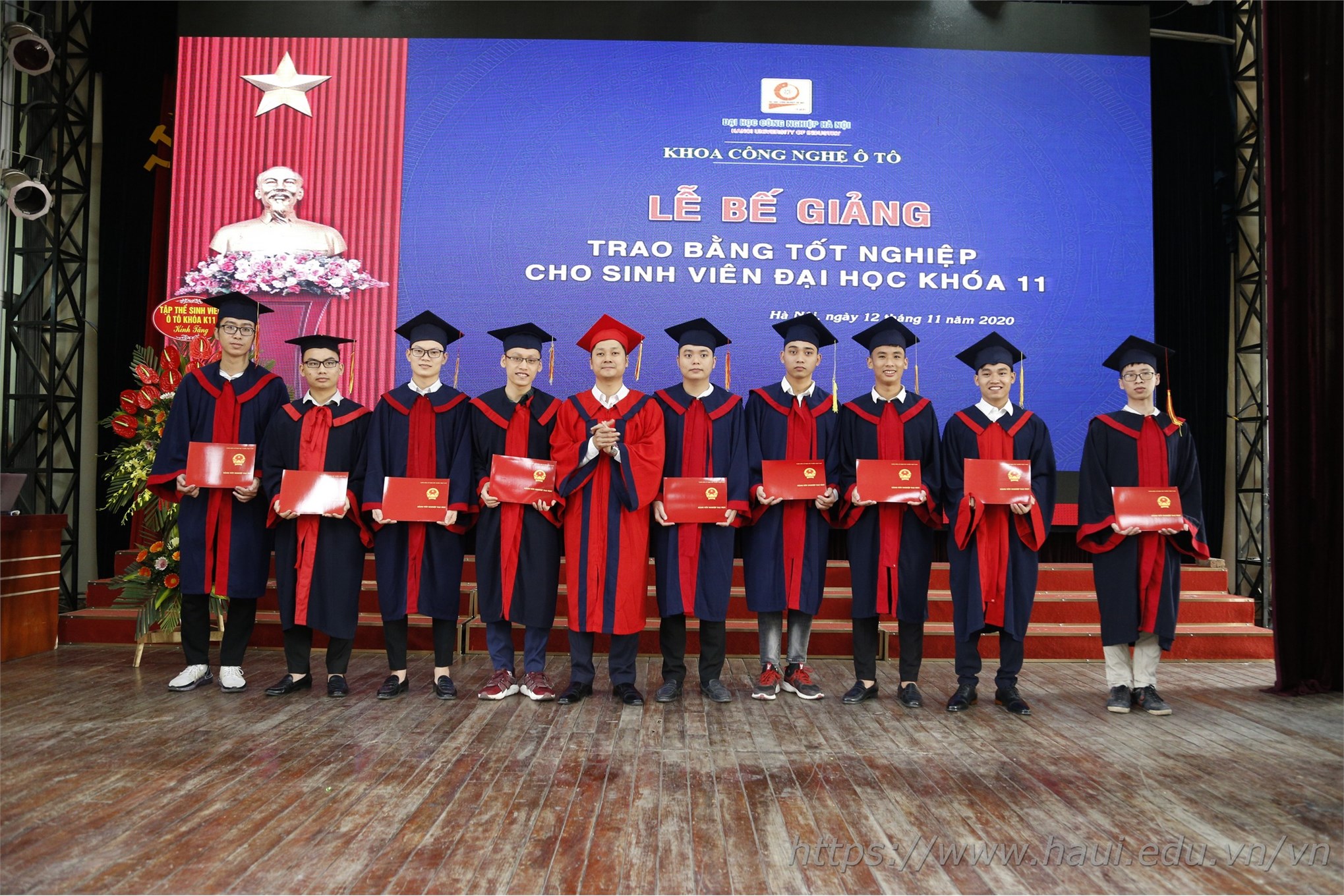 Từ ngày 12/11 – 14/11/2020, khắp sân trường và các hội trường lớn của ĐHCNHN tràn ngập sắc áo cử nhân cùng những nụ cười rạng rỡ trong ngày bế giảng và trao bằng tốt nghiệp. Tấm bằng cử nhân đỏ có đóng dấu ĐHCNHN không chỉ là minh chứng và kết quả cho 4 năm học hành chăm chỉ, nghiêm túc của các tân cử nhân dưới ngôi nhà chung HaUI, mà còn là hành trang để các em tự tin vững bước vào đời.