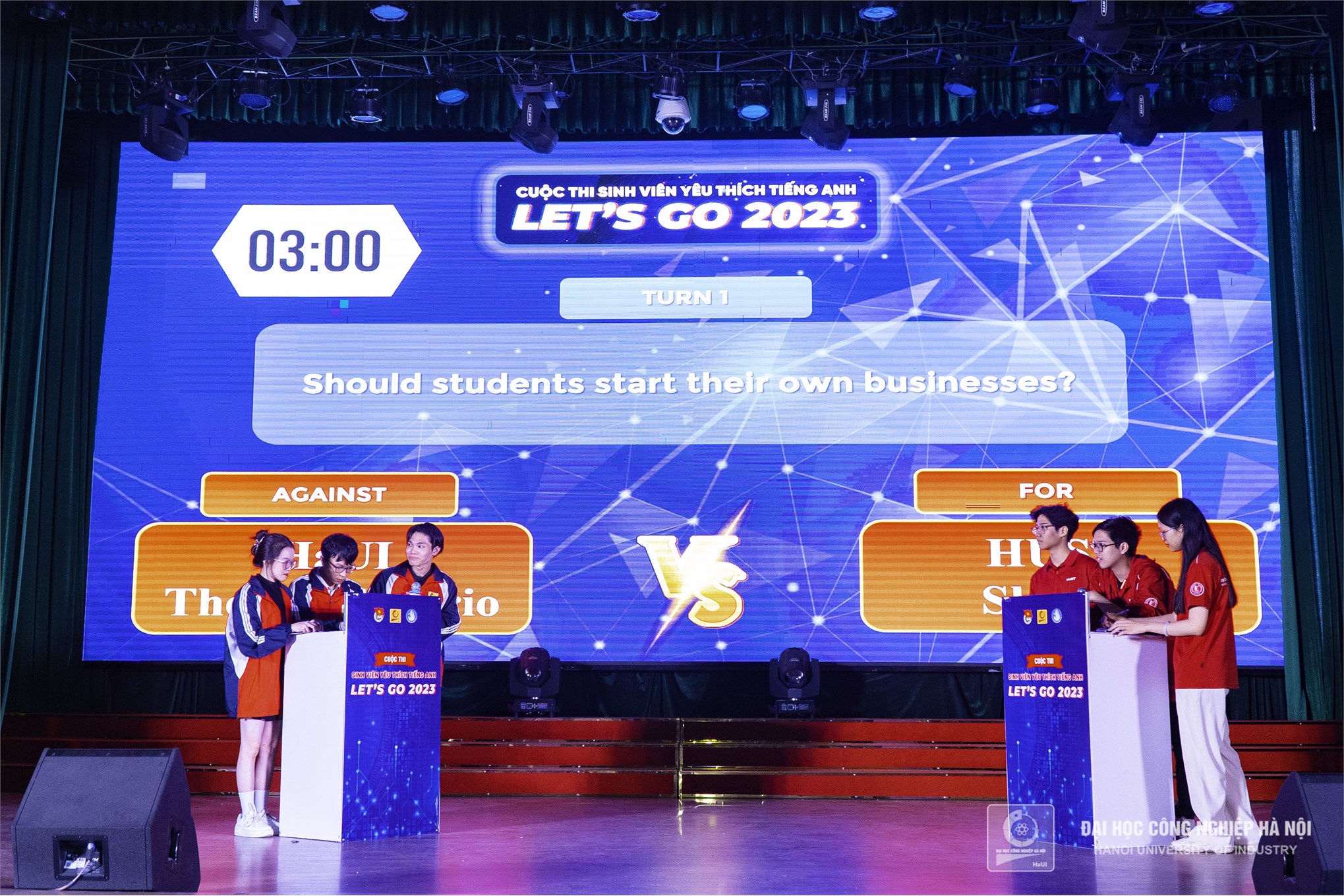 Sinh viên yêu thích Tiếng Anh Let’s go 2023 là sân chơi giao lưu, học hỏi, tạo cơ hội cho sinh viên trau dồi khả năng ngoại ngữ, kỹ năng hùng biện và làm việc nhóm. Cuộc thi được Đoàn Thanh niên Đại học Công nghiệp Hà Nội phối hợp với trường Ngoại ngữ Du lịch-HaUI đồng tổ chức, thu hút sự quan tâm, tham gia của đông đảo sinh viên trong và ngoài trường.