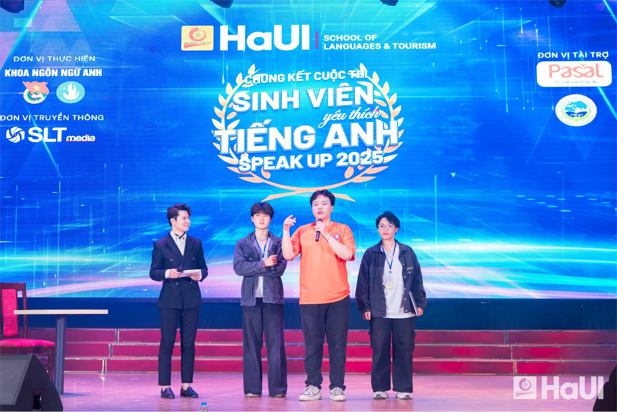Tối ngày 22/5, Trường Đại học Công nghiệp Hà Nội (HaUI) đã tổ chức Chung kết Cuộc thi Sinh viên yêu thích tiếng Anh "Speak Up 2025”, thu hút đông đảo sinh viên tham gia, tạo nên một sân chơi trí tuệ, sôi động, thể hiện tài năng và khả năng hội nhập của sinh viên HaUI.