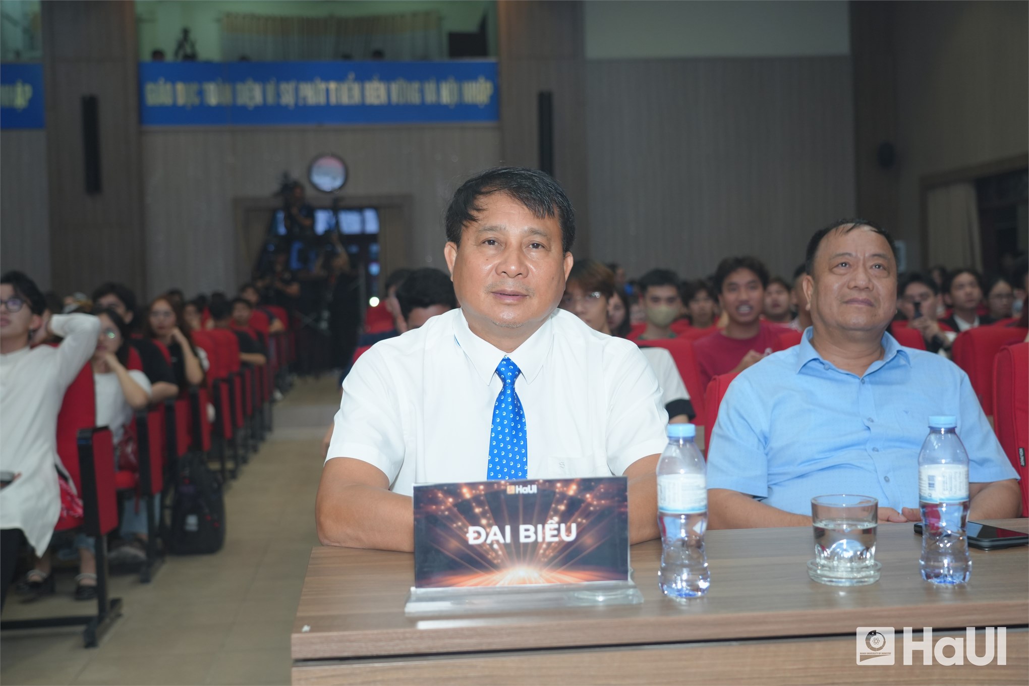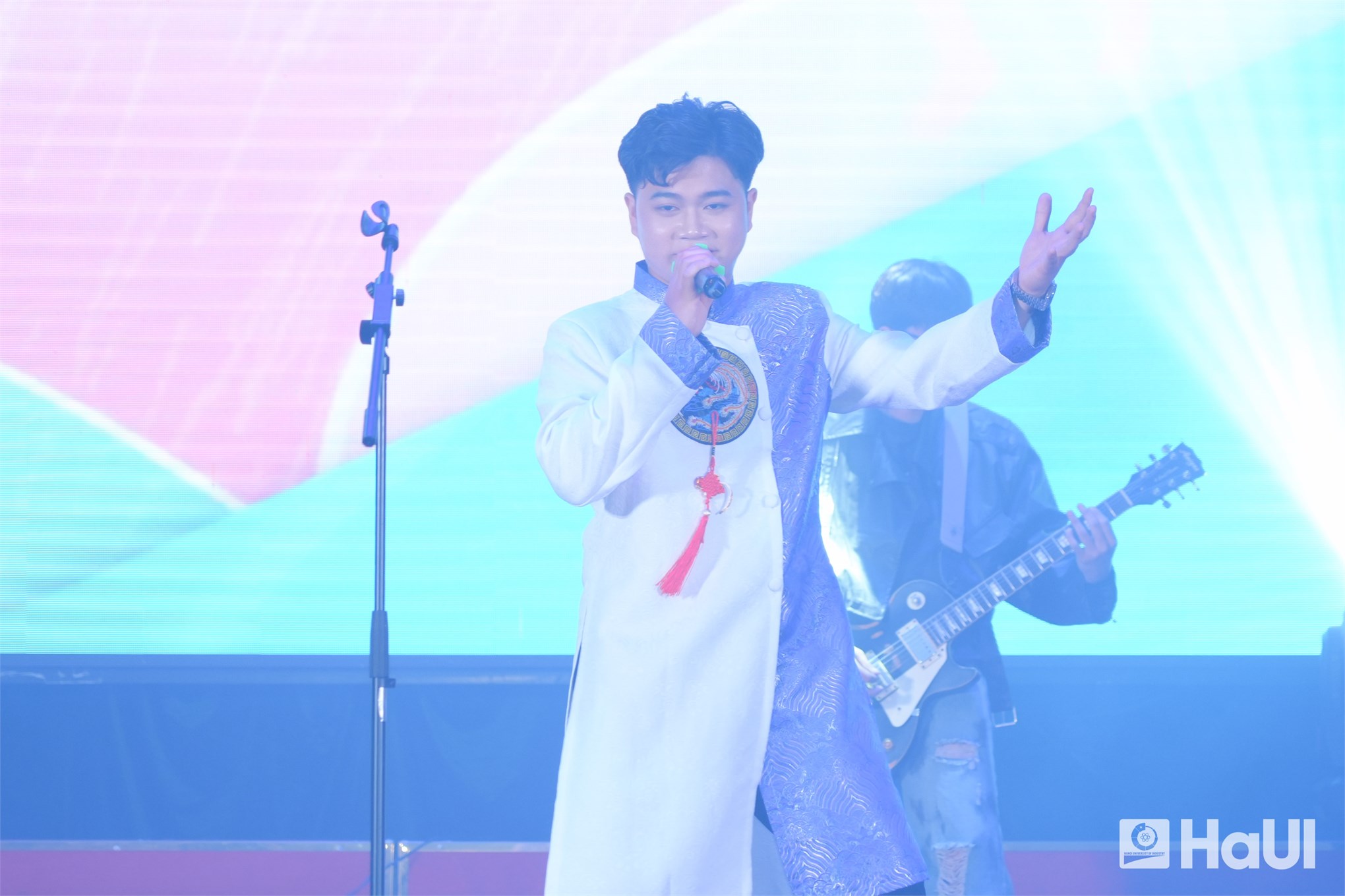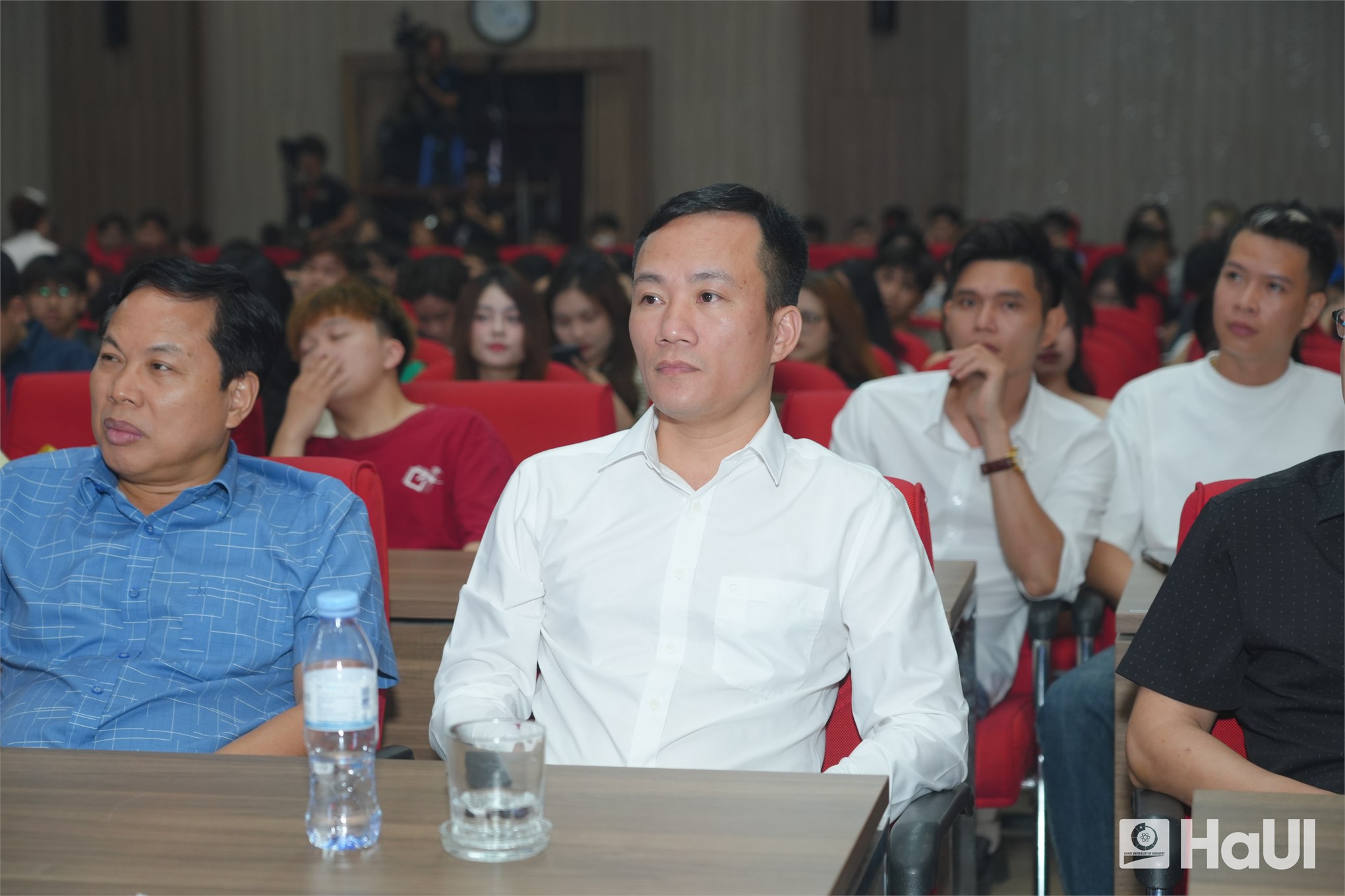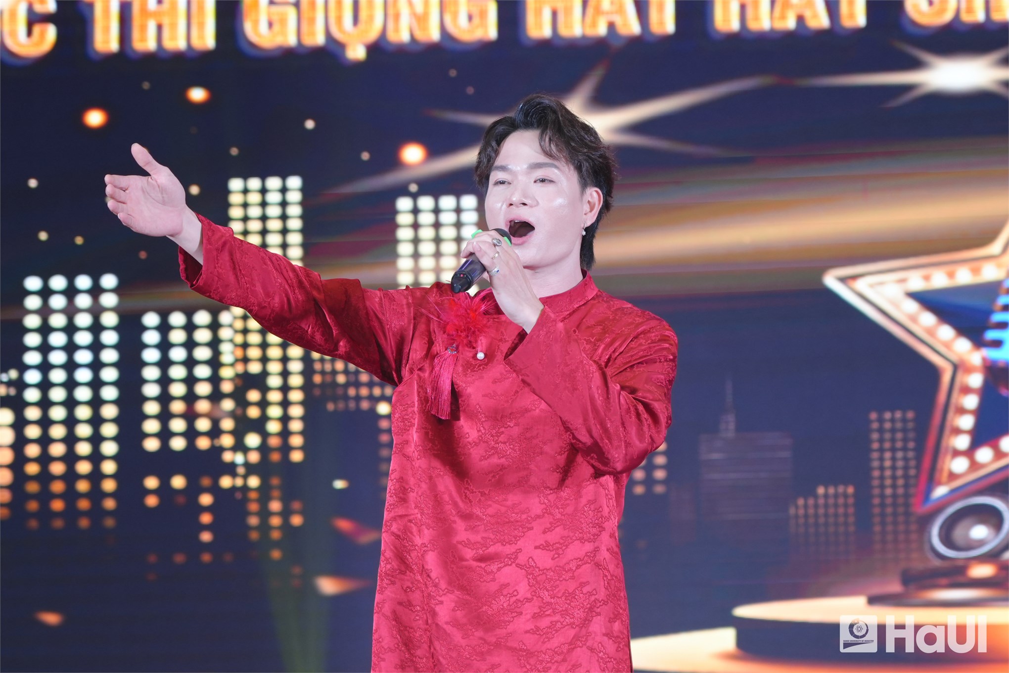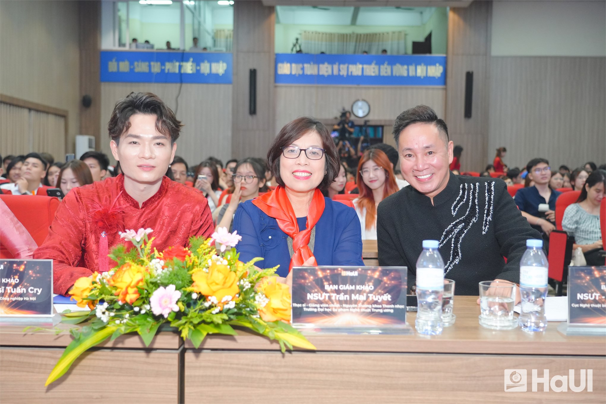 Sân khấu "The Voice HaUI 2025" đã thực sự bùng cháy trong đêm chung kết 10/06/2025, với một bữa tiệc âm nhạc đỉnh cao và đầy cảm xúc. Sự kiện là tuyên ngôn sống động cho triết lý giáo dục của Nhà trường: “Giáo dục toàn diện, vì sự phát triển bền vững và hội nhập”, tạo bệ phóng để sinh viên rèn luyện bản lĩnh, trí tuệ và tâm hồn. PGS.TS. Lê Hồng Quân, Bí thư Đảng ủy, Chủ tịch Hội đồng trường và TS. Nguyễn Văn Thiện, Phó Bí thư Đảng ủy, Phó Hiệu trưởng Nhà trường dự và chúc mừng các bạn sinh viên.