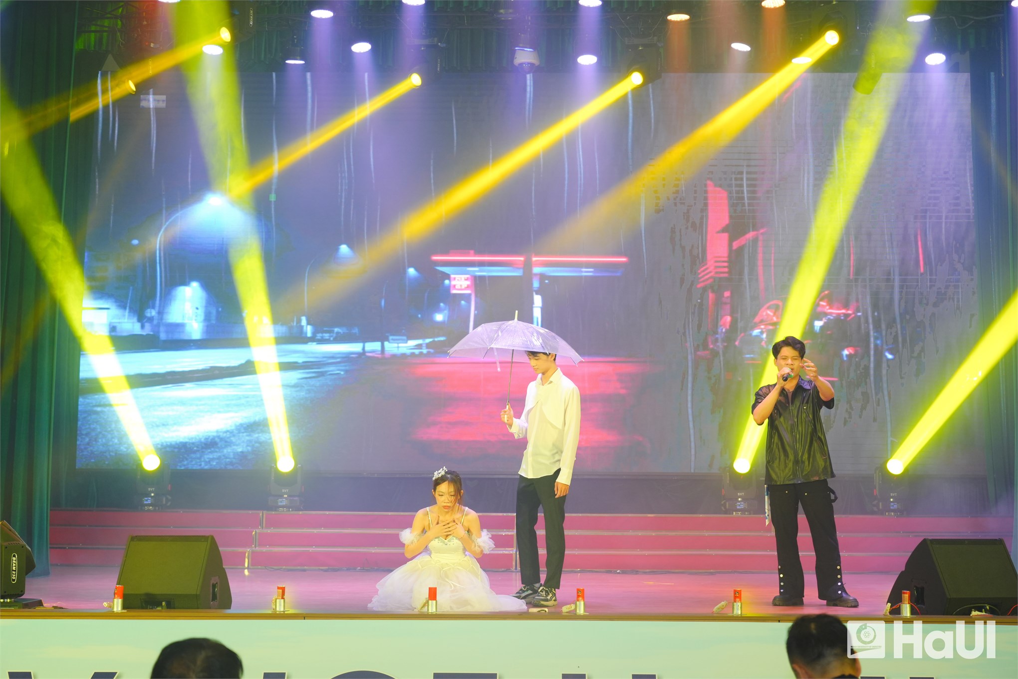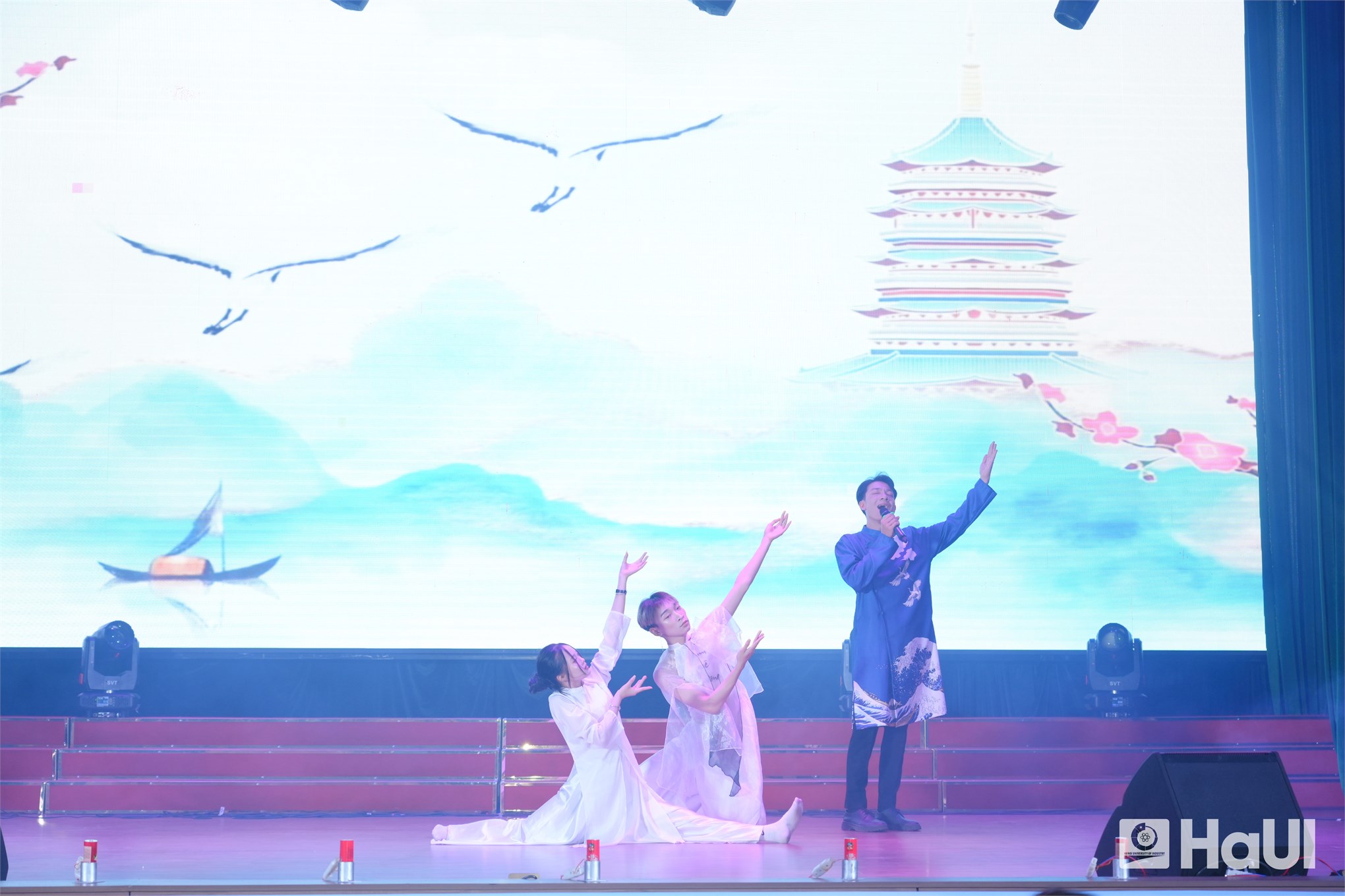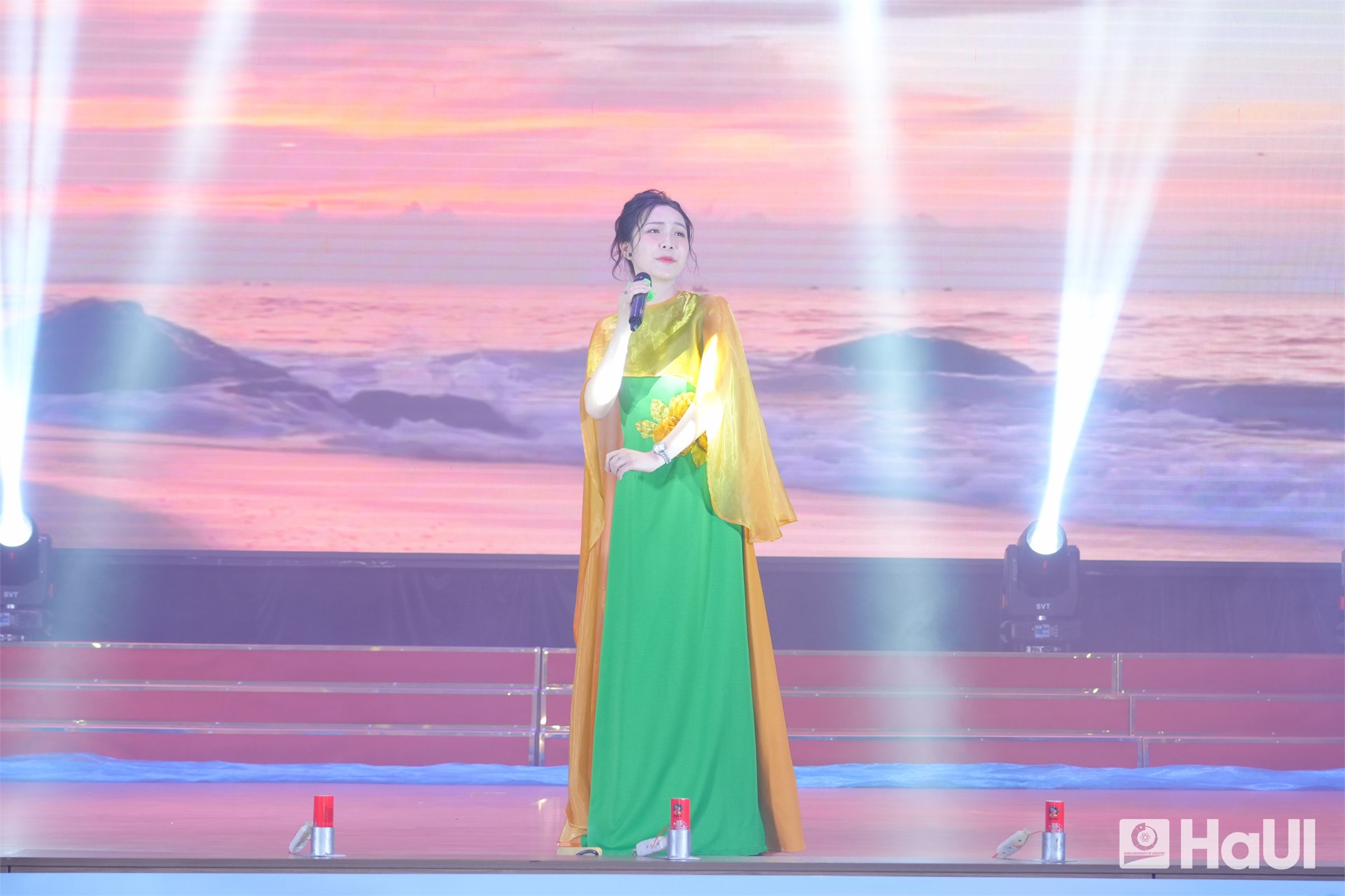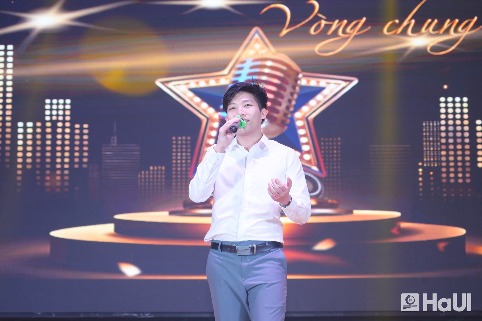 Sân khấu "The Voice HaUI 2025" đã thực sự bùng cháy trong đêm chung kết 10/06/2025, với một bữa tiệc âm nhạc đỉnh cao và đầy cảm xúc. Sự kiện là tuyên ngôn sống động cho triết lý giáo dục của Nhà trường: “Giáo dục toàn diện, vì sự phát triển bền vững và hội nhập”, tạo bệ phóng để sinh viên rèn luyện bản lĩnh, trí tuệ và tâm hồn. PGS.TS. Lê Hồng Quân, Bí thư Đảng ủy, Chủ tịch Hội đồng trường và TS. Nguyễn Văn Thiện, Phó Bí thư Đảng ủy, Phó Hiệu trưởng Nhà trường dự và chúc mừng các bạn sinh viên.