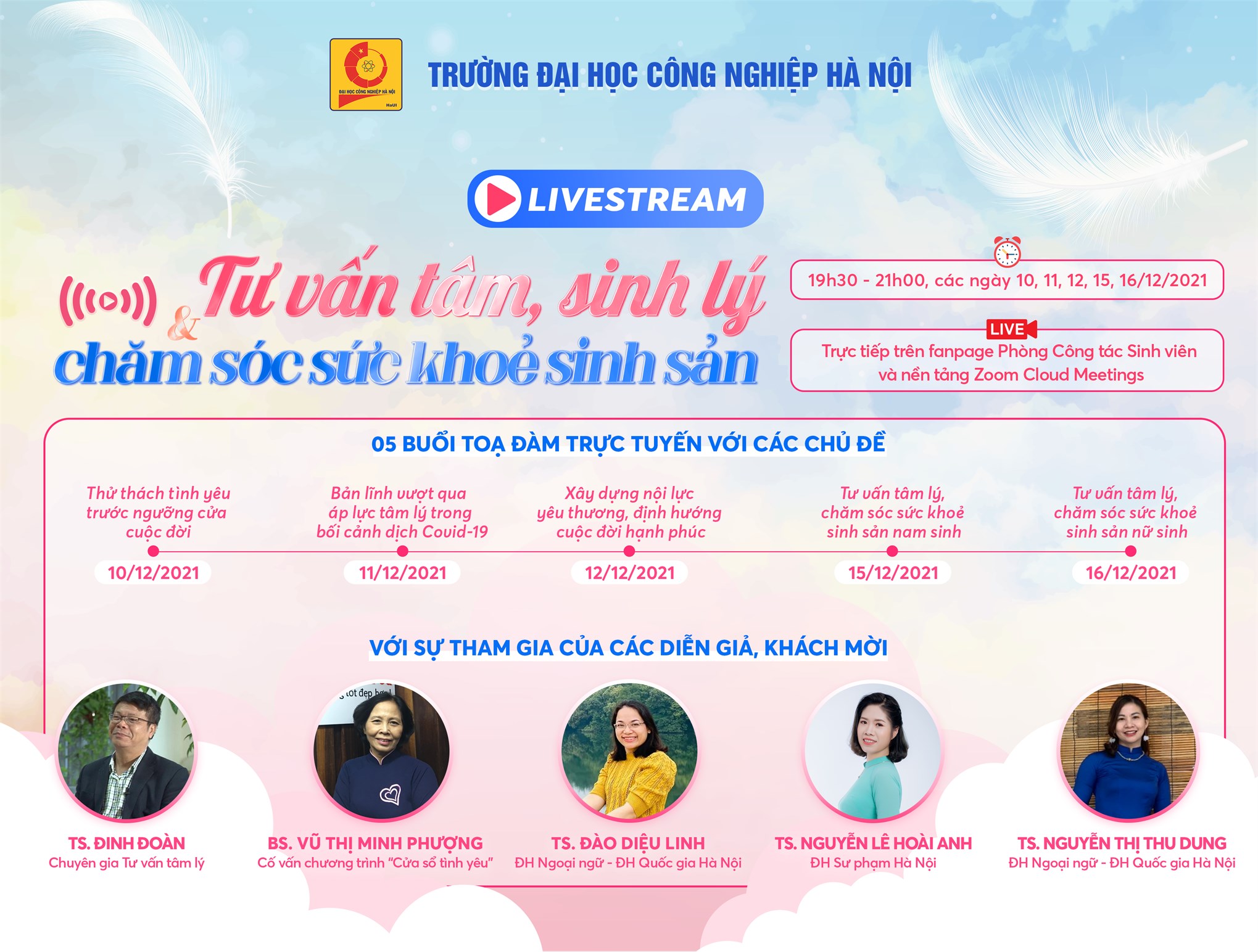 Chuỗi hoạt động tư vấn tâm lý với 5 chuyên đề cụ thể: Thử thách tình yêu trước ngưỡng cửa cuộc đời; Bản lĩnh vượt qua áp lực tâm lý trong bối cảnh dịch Covid; Xây dựng nội lực yêu thương, định hướng cuộc đời hạnh phúc; Tình yêu và tình dục; Trầm cảm và kiềm chế cảm xúc. Các chuyên gia tư vấn, bác sĩ đã chia sẻ, cung cấp những thông tin về giới tính, sức khỏe sinh sản, tình yêu, mối quan hệ xã hội, từ đó tăng cảm xúc tích cực, tự đưa ra quyết định trong tình huống khó khăn sinh viên gặp phải khi đang học tập, rèn luyện.