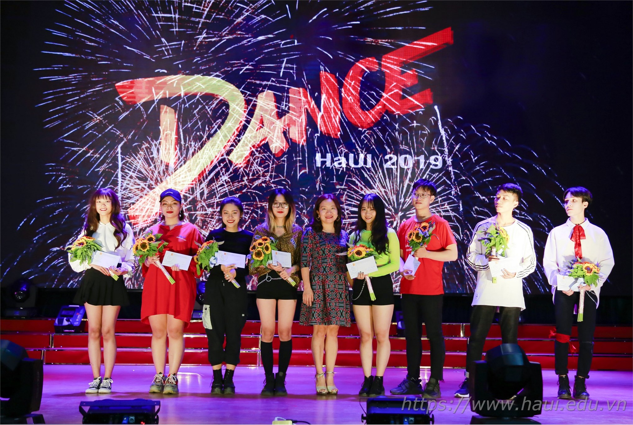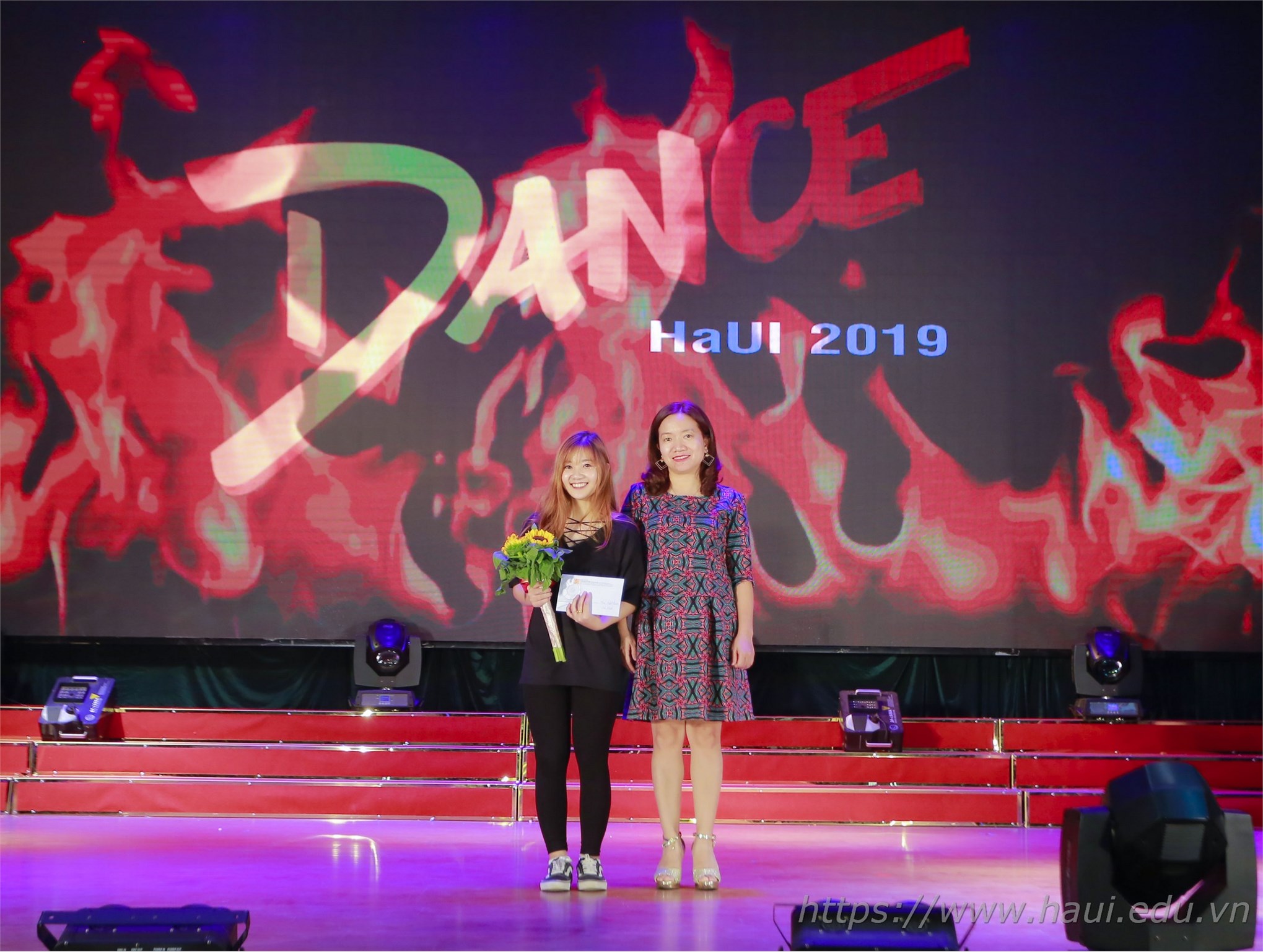Đ/c Trương Thị Thanh Hoài - Bí thư Đoàn trường trao giải cho các tiết mục đạt giải ở thể loại nhảy hiện đại và múa nghệ thuật
