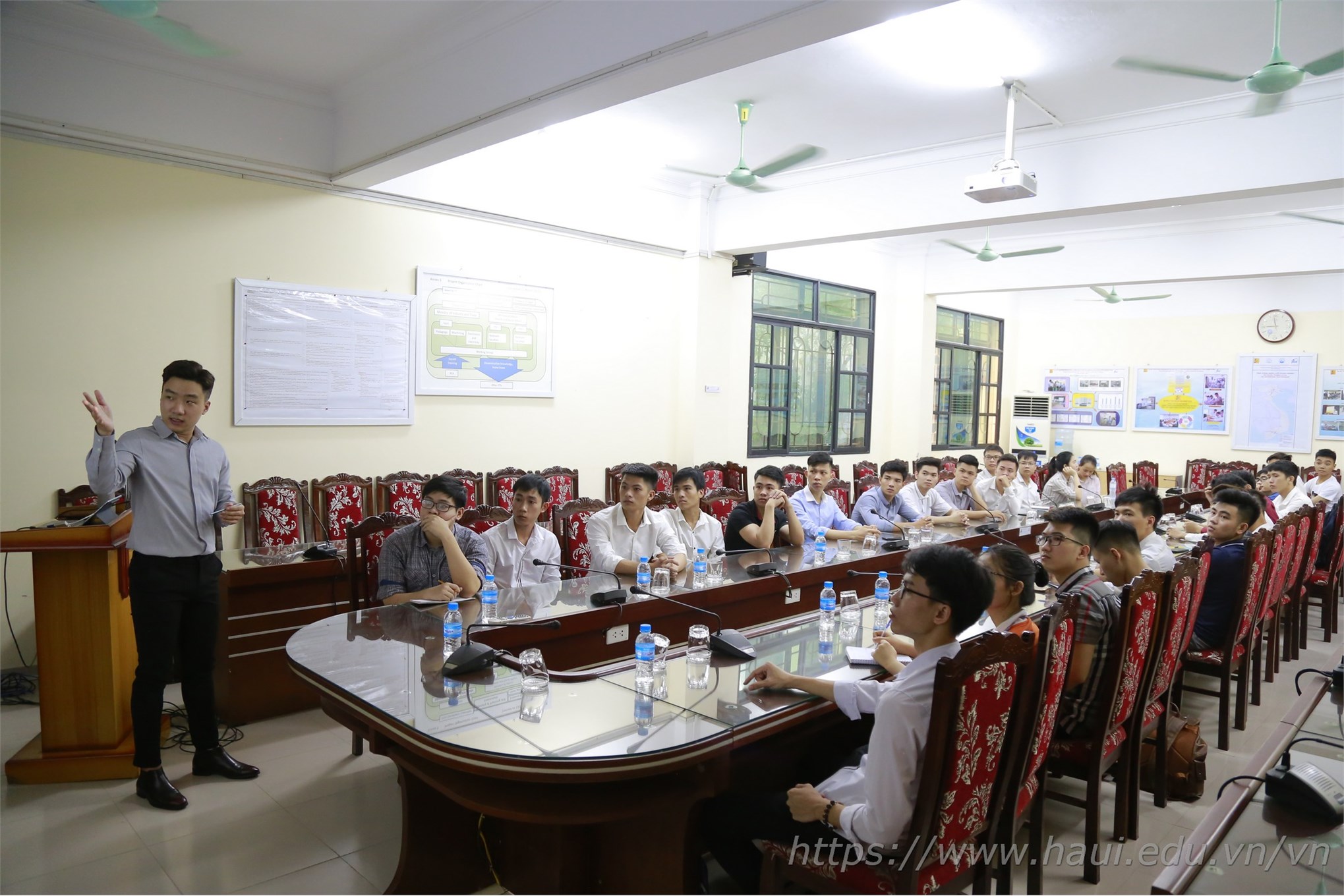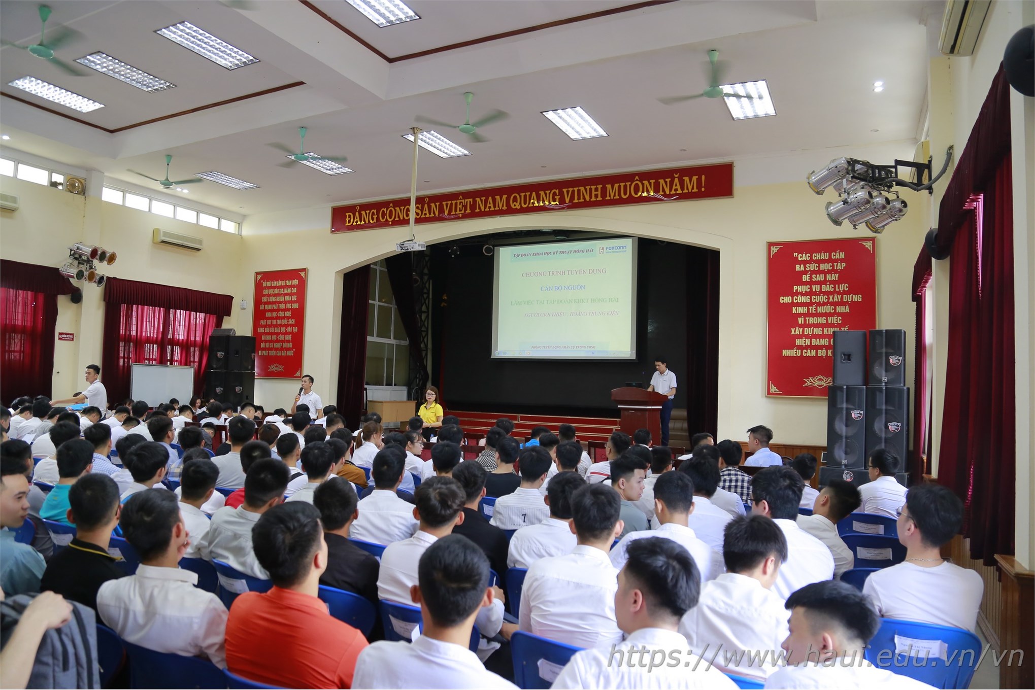 Đại diện Tập đoàn KHKT Hồng Hải đã dành thời gian cung cấp và chia sẻ những thông tin tổng quan về Tập đoàn, cũng như nhu cầu tuyển dụng lần này. Phía Tập đoàn cũng cho biết, luôn đánh giá rất cao năng lực làm việc, tinh thần trách nhiệm của sinh viên Đại học Công nghiệp Hà Nội. Qua nhiều lần tuyển dụng, hiện đã có hàng trăm sinh viên tốt nghiệp trường ĐHCNHN đã và đang làm việc cho Tập đoàn ở vị trí kỹ sư, cán bộ cao cấp.