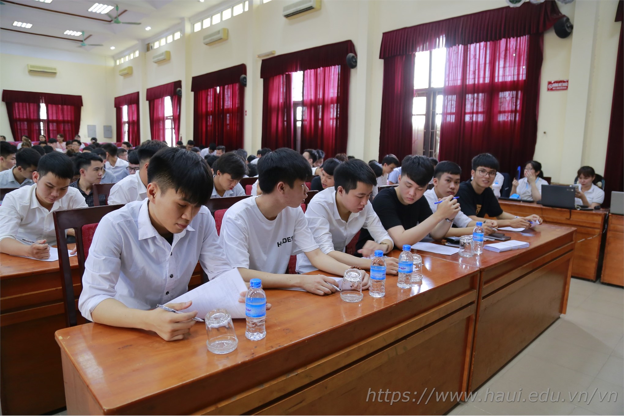 Hàng trăm sinh viên đã tốt nghiệp và sinh viên năm cuối Đại học Công nghiệp Hà Nội đã có mặt từ rất sớm tham dự Hội thảo tuyển dụng của Tập đoàn KHKT Hồng Hải