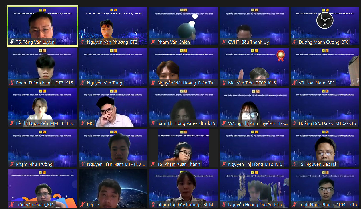 Tối ngày 12/3/2022, LCĐ - LCH sinh viên khoa Điện tử đã tổ chức thành công chương trình Hội thảo khoa học Sinh viên khoa Điện tử với "nghiên cứu khóa học" (NCKH) năm 2022. Chương trình được thực hiện trên nền tảng họp trực tuyến Zoom và phát sóng trực tiếp qua Fanpage Khoa Điện tử.
