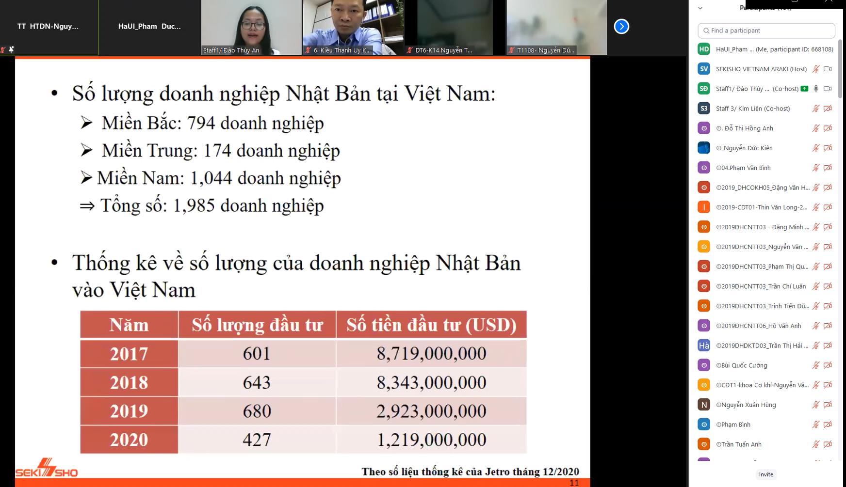 Chia sẻ tại Hội thảo, đại diện Công ty TNHH Sekisho Việt Nam cho biết trong số 1985 doanh nghiệp Nhật Bản đang hoạt động ở Việt Nam, có tới 794 doanh nghiệp Nhật Bản đang hoạt động ở miền Bắc, mở ra nhiều cơ hội cho sinh viên Trường Đại học Công nghiệp Hà Nội.
