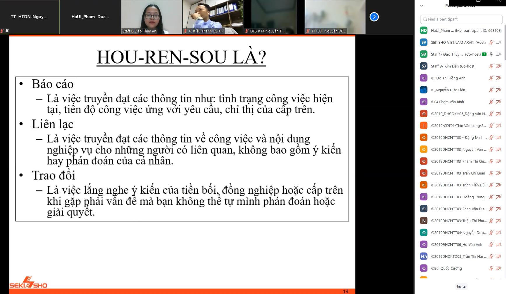 (1) Quy tắc giao tiếp HOU-REN-SOU trong đó HOU (báo cáo)-REN (liên lạc)-SOU (trao đổi);