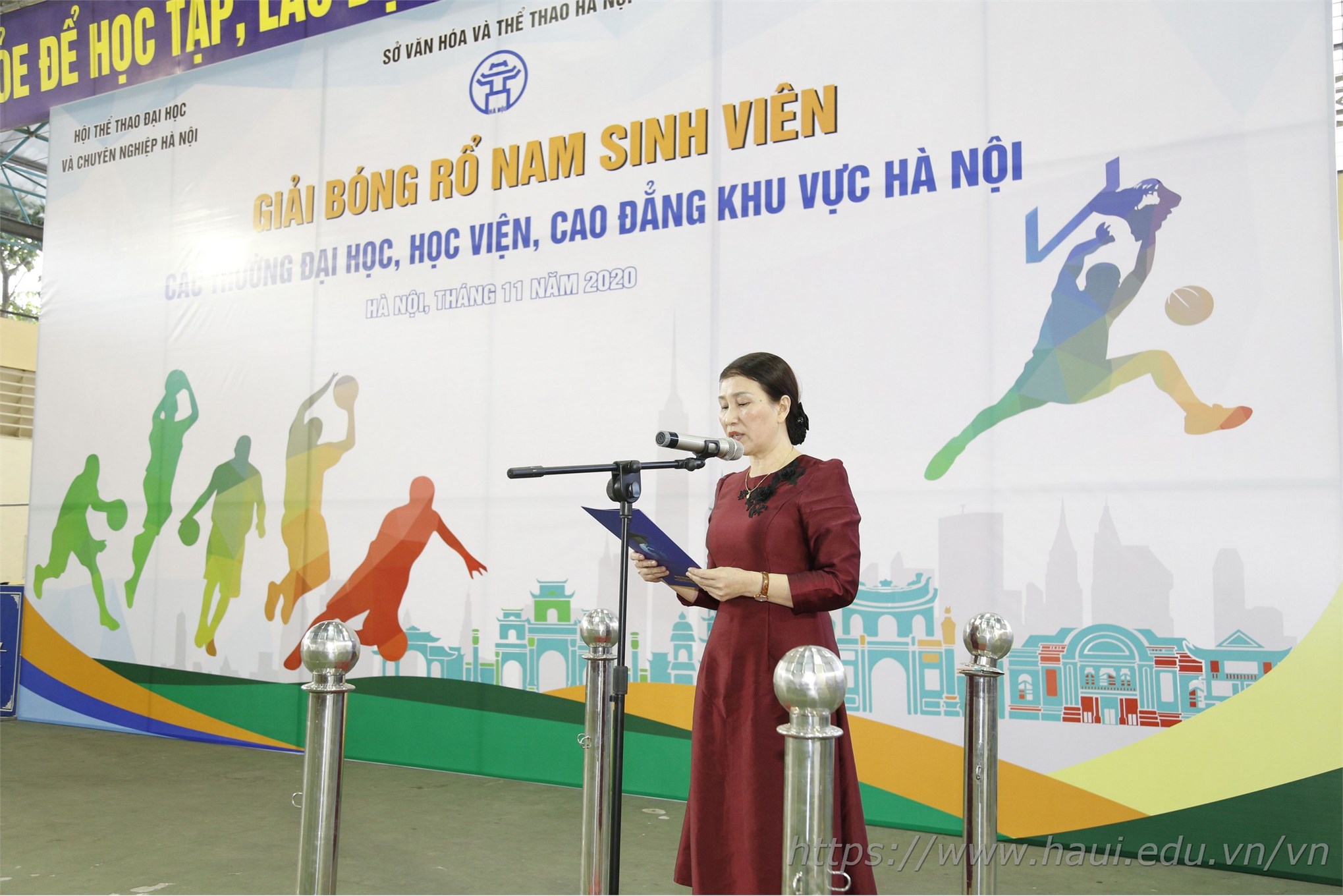 Phát biểu tại Lễ Khai mạc. TS.Bùi Thị Ngân - Phó hiệu trưởng ĐHCNHN nhấn mạnh: Công tác giáo dục thể chất, rèn luyện sức khỏe trong trường Đại học rất quan trọng, và môn bóng rổ luôn là môn thể thao yêu thích của các em nam sinh viên. Chúc cho các đội thi có một giải đấu thành công, đem đến cho khán giả những trận đấu hay, hấp dẫn và giữ đúng tinh thần “fair play” trong suốt cuộc thi.