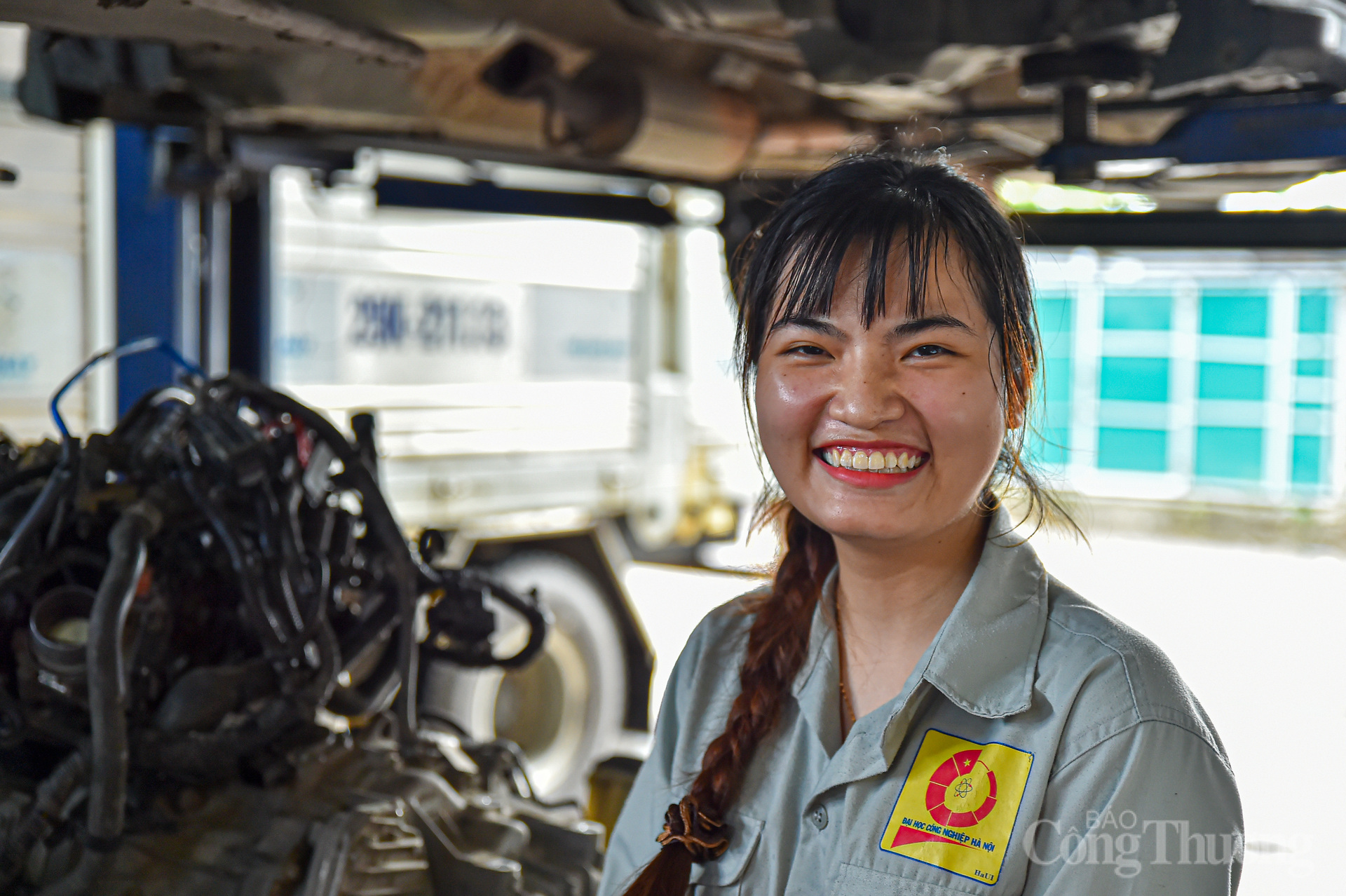 Tại Trường Cơ khí - Ô tô, Trường Đại học Công nghiệp Hà Nội (HaUI), nơi tiếng máy móc và mùi dầu mỡ dường như là "đặc sản" của cánh mày râu lại bất ngờ xuất hiện những bóng hồng.