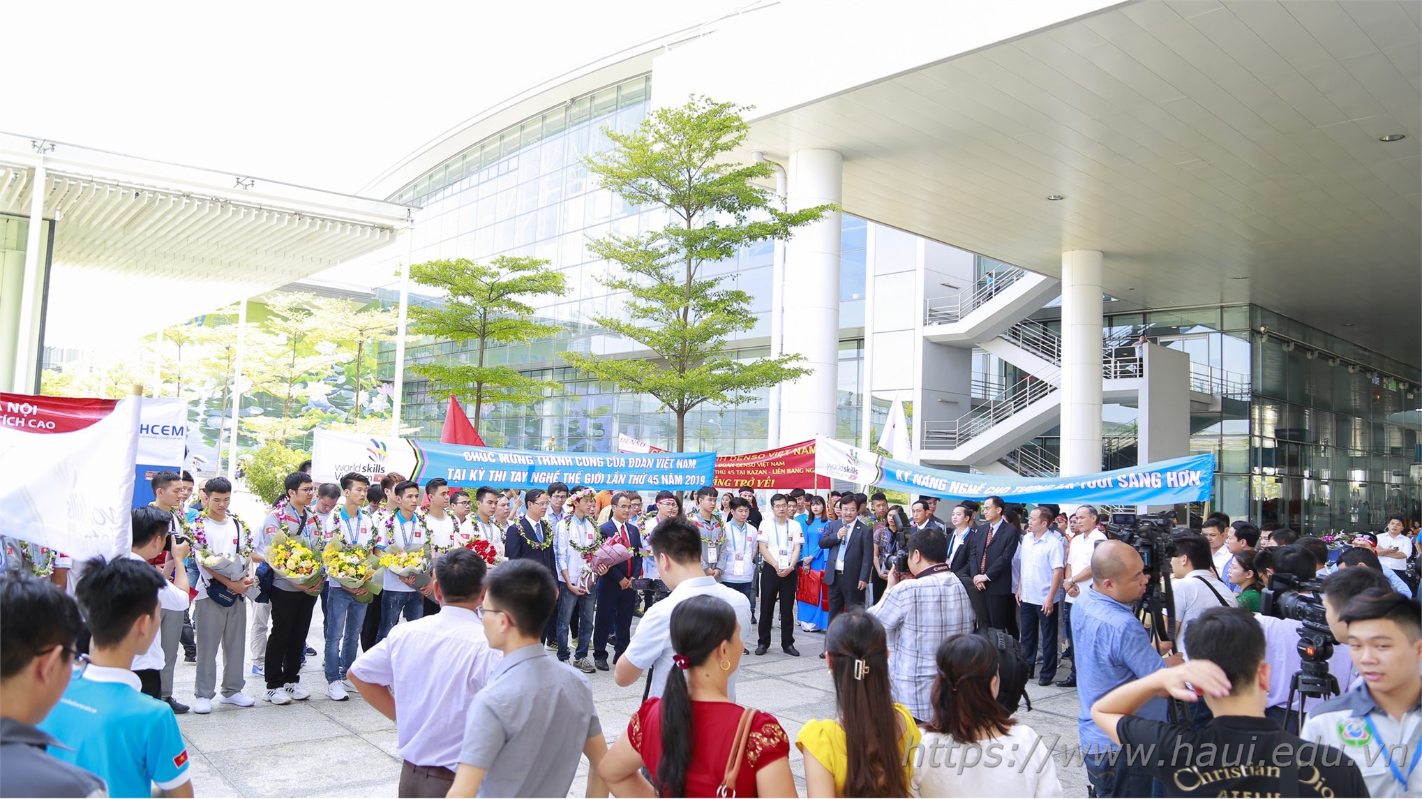 Toàn cảnh buổi đón đoàn Việt Nam trở về từ Kỳ thi tay nghề thế giới lần thứ 45 tại Kazan, Liên bang Nga