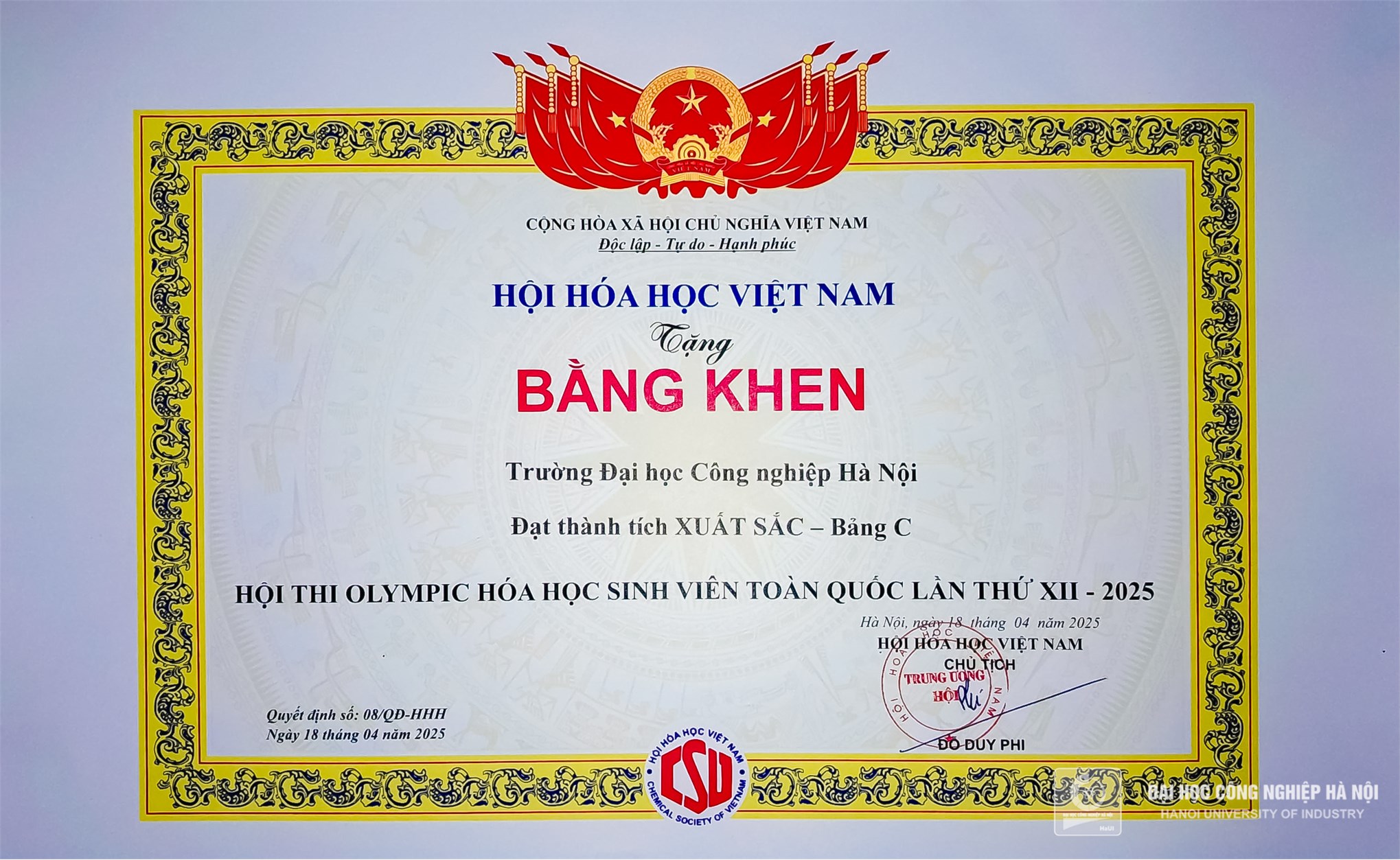 Bằng khen Tập thể xuất sắc của HaUI tại Hội thi Olympic Hóa học sinh viên toàn quốc lần thứ XII - 2025