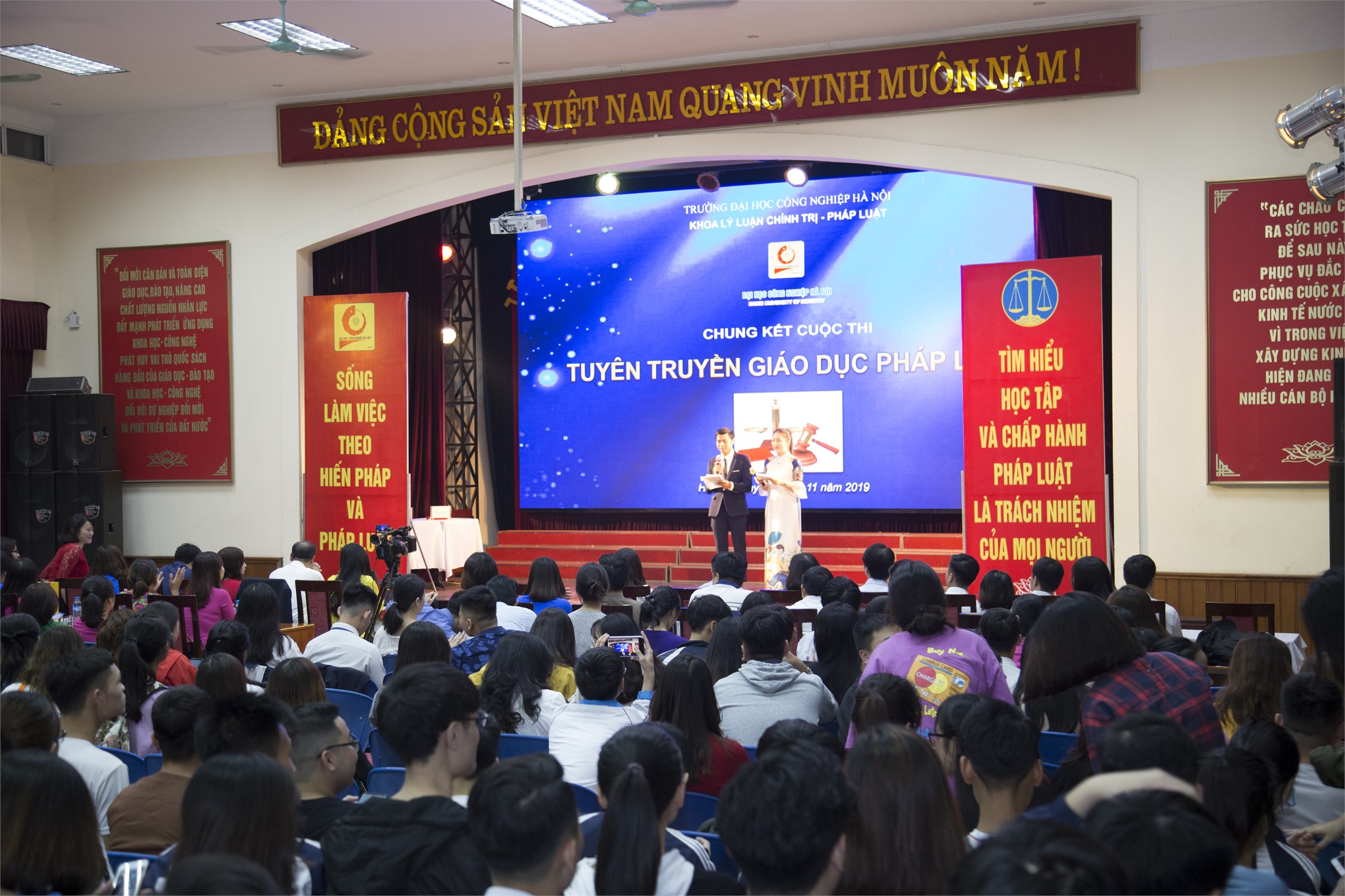 Cuộc thi “Tuyên truyền giáo dục pháp luật 2019” được Khoa Lý luận chính trị - Pháp luật - ĐHCNHN phối hợp với Đoàn Thanh niên Nhà trường tổ chức thực sự là một sân chơi lành mạnh, bổ ích cho đoàn viên thanh niên, sinh viên nhà trường. Cuộc thi nhằm nâng cao nhận thức và ý thức tuân thủ pháp luật, tự giác học tập, tìm hiểu, xây dựng lối sống và làm việc theo pháp luật của đoàn viên, sinh viên, đồng thời tạo điều kiện cho đoàn viên thanh niên, sinh viên giao lưu, trao đổi kinh nghiệm trong việc tìm hiểu, nghiên cứu, học tập.