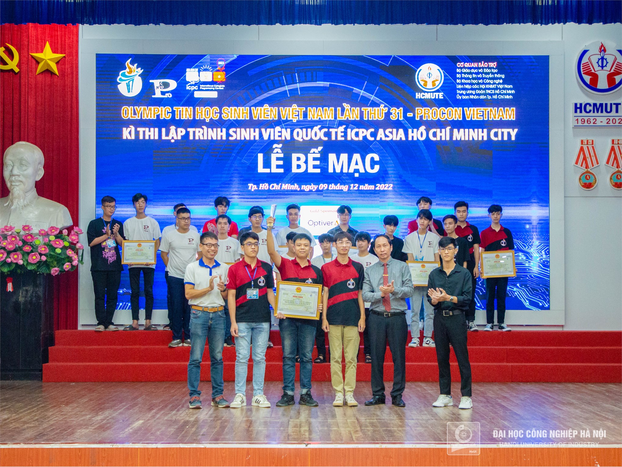 Qua sự tranh tài giữa các đội, đội tuyển sinh viên Trường Đại học Công nghiệp Hà Nội xuất sắc đạt 01 giải vô địch, 02 giải Nhì, 03 giải Ba, 05 giải Khuyến khích tại cuộc thi Olympic Tin học sinh viên Việt Nam (OLP) lần thứ 31, Procon và Lập trình sinh viên quốc tế ICPC Asia HoChiMinh City 2022 vừa diễn ra tại TP Hồ Chí Minh từ ngày 06 đến ngày 09/12/2022.