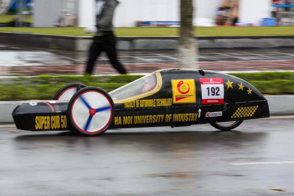 Mức tiêu thụ trung bình 1.091,1 km/lít giúp đội SuperCub 50 - ĐH Công nghiệp Hà Nội về nhất ở hạng mục học sinh, sinh viên trong cuộc thi "Lái xe sinh thái" ở Trung tâm hội nghị quốc gia (Hà Nội), ngày 26/5. Đội về thứ hai đạt 958,3 km/lít cũng của ĐH Công nghiệp Hà Nội là SuperCub 70. Đội về thứ ba là DUT-Team của ĐH Bách khoa Đà Nẵng với thành tích 798,2 km/lít.
