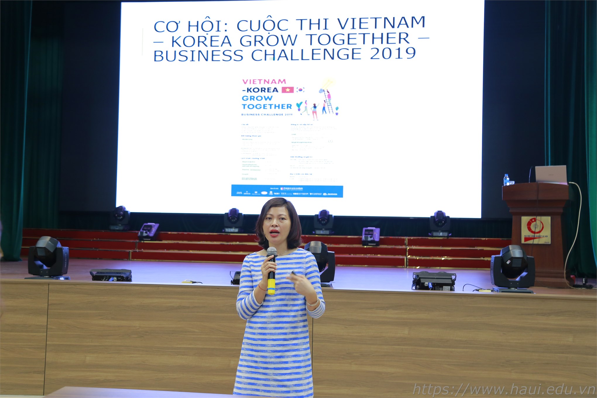 Mang đến buổi Tọa đàm sáng nay, nhóm chuyên gia còn giới thiệu đến các bạn sinh viên cơ hội tham gia cuộc thi “Vietnam – Korea Grow Together – Business Challenge 2019” - cuộc thi dành cho các bạn sinh viên theo học tại các trường đại học ở Việt Nam đang ấp ủ ý tưởng khởi nghiệp hay một kế hoạch kinh doanh, với trị giá Giải Nhất gồm 3.000 USD và chuyến tham quan Hàn Quốc 4 ngày 3 đêm.