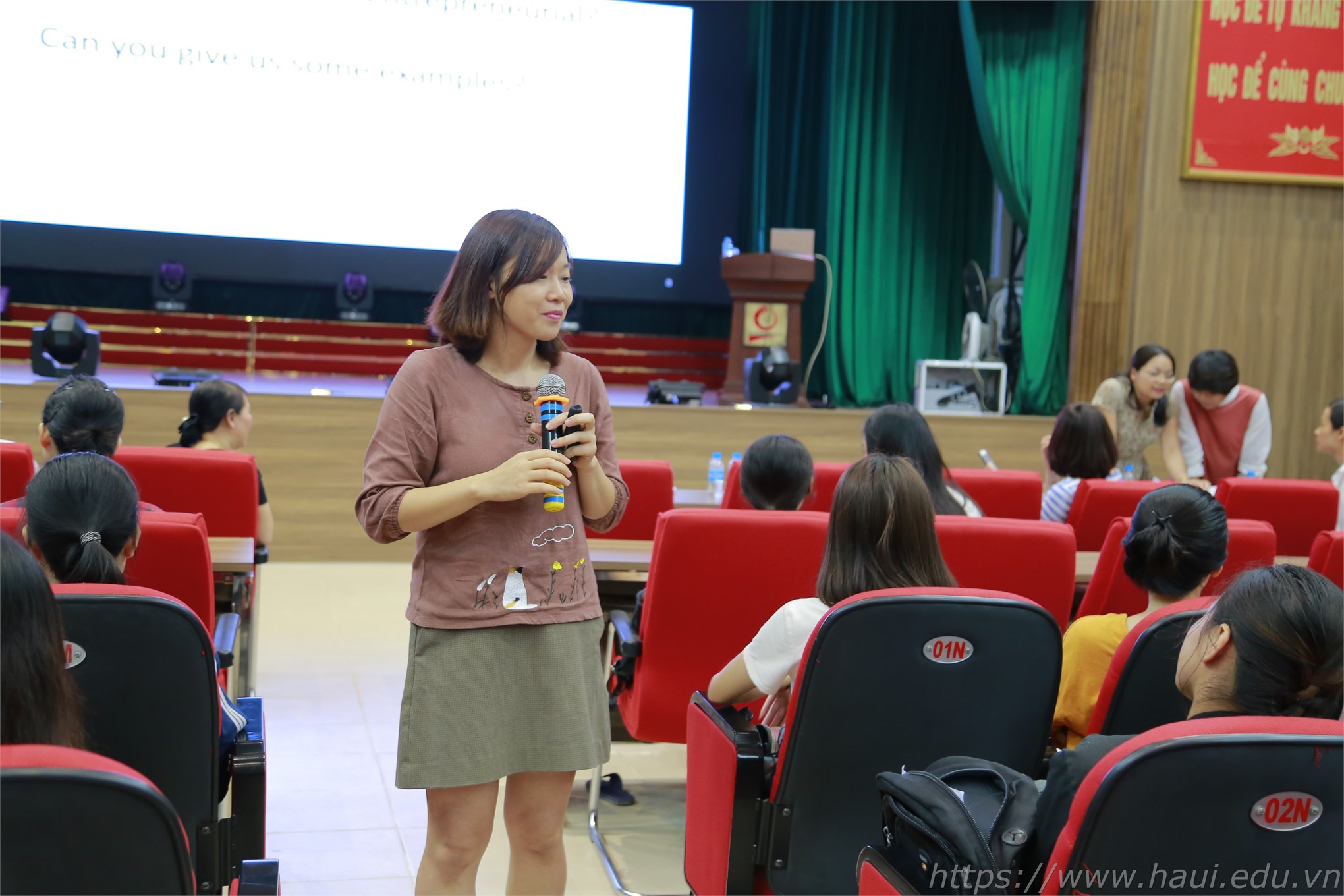 Bước vào phần chính của buổi Tọa đàm, các chuyên gia về đổi mới sáng tạo và tư duy khởi nghiệp đến từ Đại học Quốc gia Hà Nội đã lần lượt chia sẻ về vấn đề này. Những bài tập test kĩ năng nhỏ, những câu hỏi gợi mở để kích thích ý tưởng sáng tạo, thái độ làm việc nhóm, đề cao sự khác biệt được các chuyên gia tập trung khai thác, để các bạn sinh viên có cơ hội thể hiện mình.