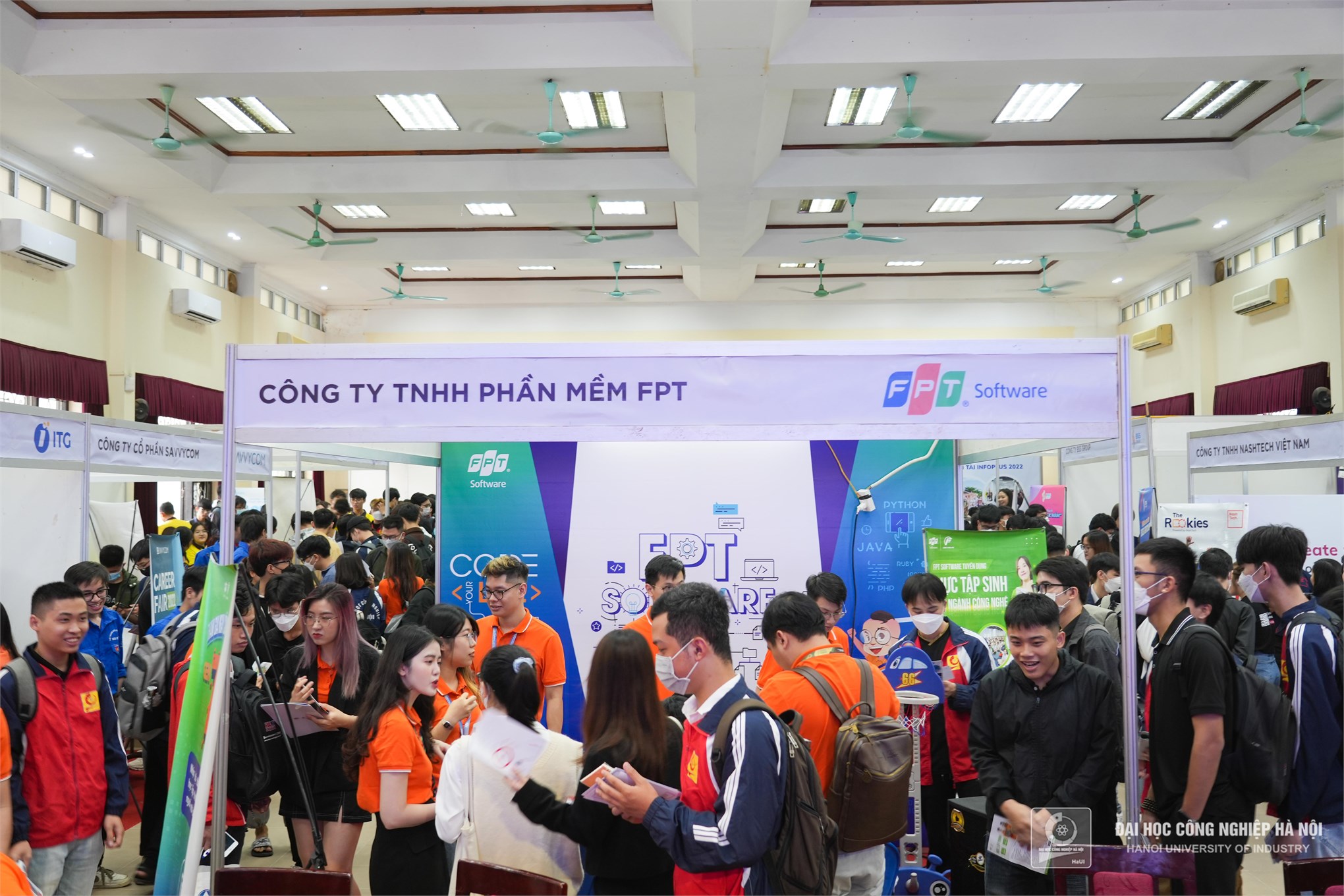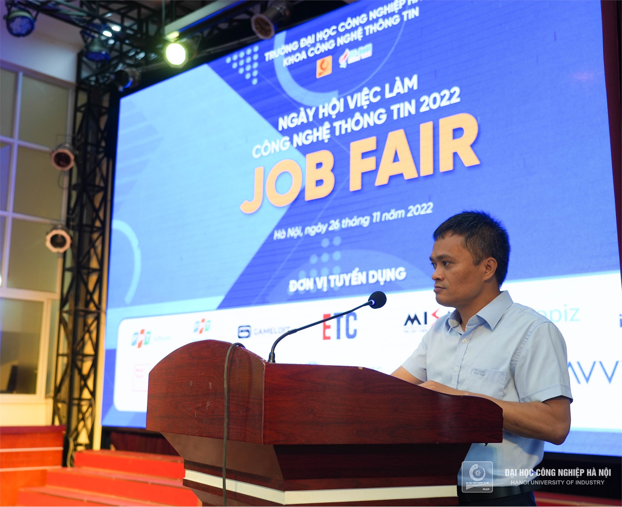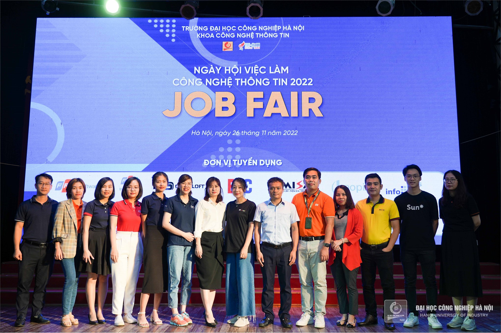 Sáng ngày 26/11, Khoa Công nghệ Thông tin - Trường Đại học Công nghiệp Hà Nội tổ chức Ngày hội việc làm Công nghệ thông tin năm 2022. Với sự tham dự của 14 doanh nghiệp và hơn 1200 sinh viên ngành CNTT, sự kiện là dịp để sinh viên ngành CNTT có cơ hội đến gần hơn với doanh nghiệp và tìm kiếm cơ hội việc làm ngay khi tốt nghiệp ra trường.