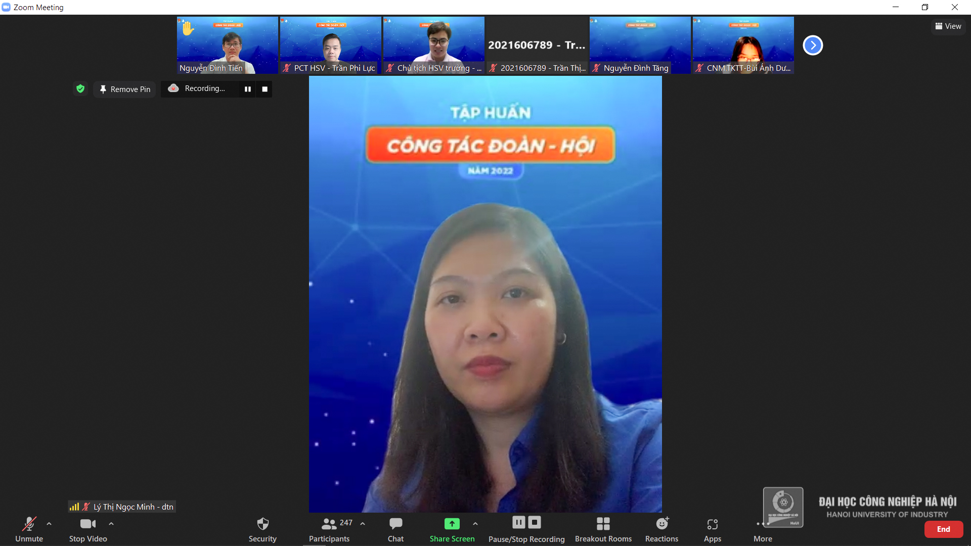 Chia sẻ tại buổi tập huấn, đồng chí Trương Thị Thanh Hoài - Bí thư Đoàn trường nhấn mạnh: Công tác tập huấn, bồi dưỡng đội ngũ cán bộ Đoàn - Hội là nhiệm vụ quan trọng, cần thiết để bổ sung lý luận, kiến thức về công tác tổ chức, xây dựng Đoàn - Hội và kỹ năng tổ chức hoạt động phong trào cho đội ngũ cán bộ cấp chi Đoàn, chi Hội. Đại học Công nghiệp Hà Nội luôn coi trọng và thường xuyên tổ chức những đợt tập huấn với nhiều nội dung thiết thực, phong phú.