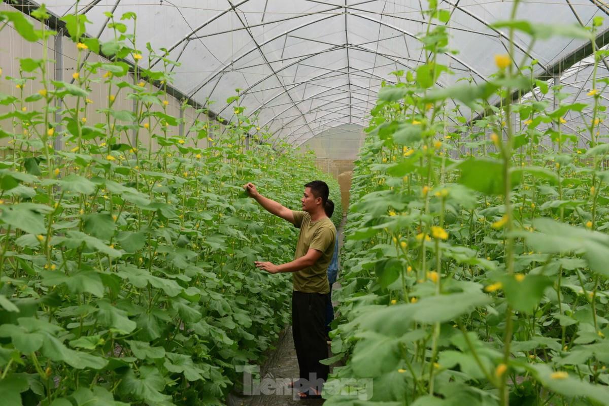 Nguyễn Việt Lâm kiểm tra chất lượng dưa lưới.