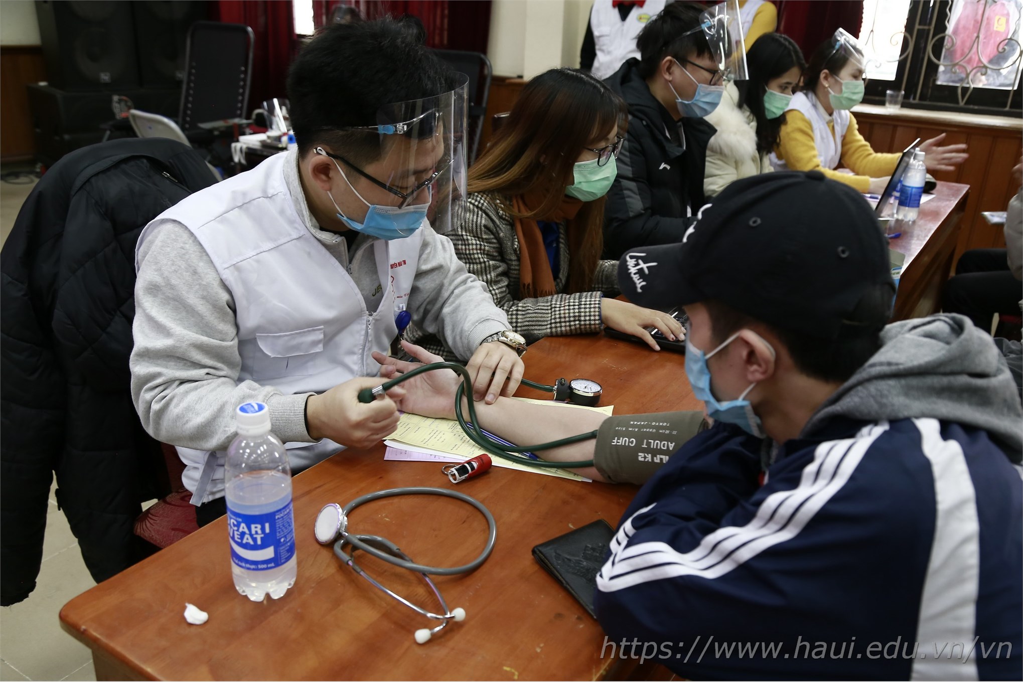 Cán bộ y tế thăm khám, kiểm tra sức khỏe người tham gia hiến máu