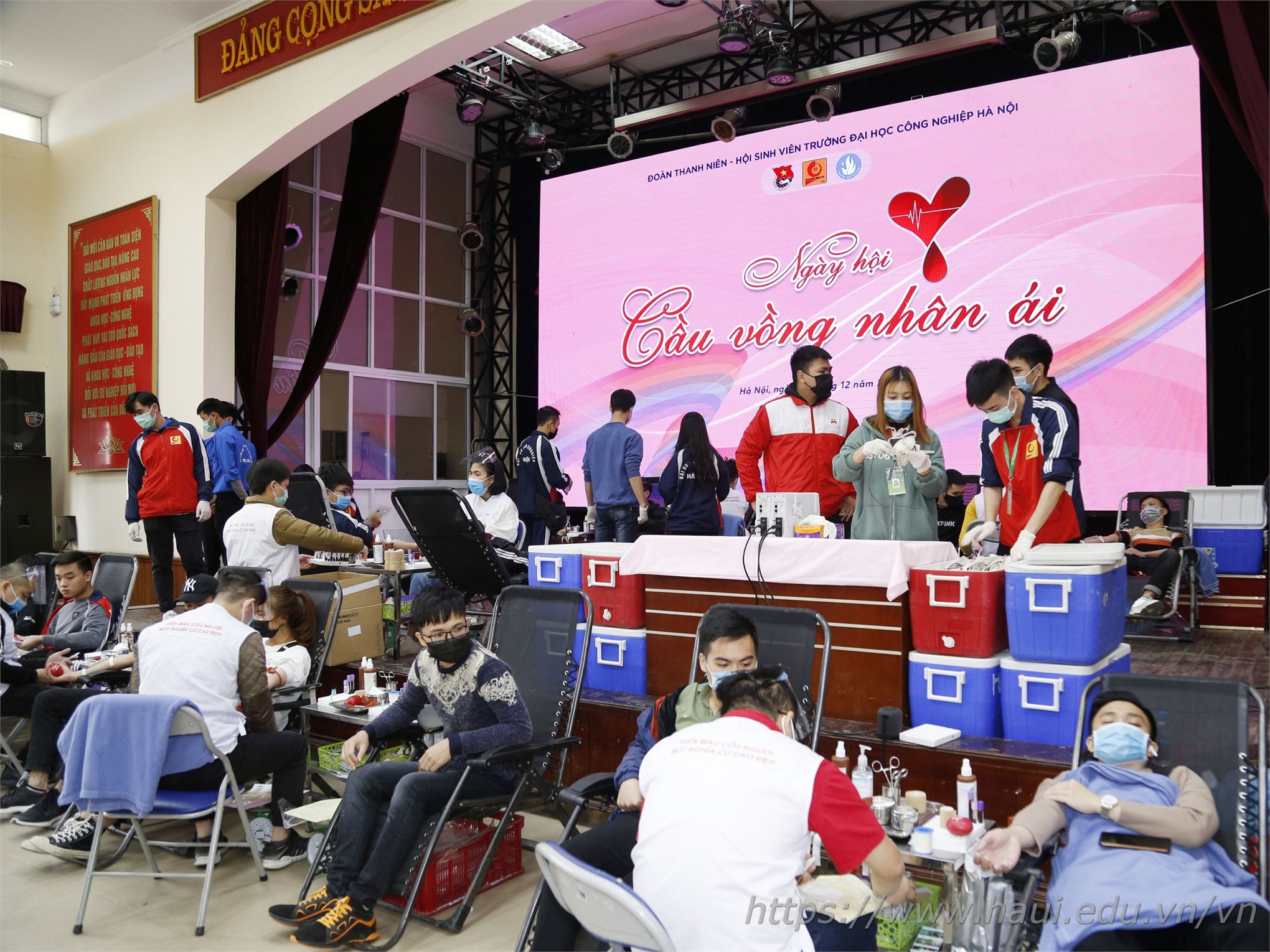 Với tinh thần trách nhiệm, lan tỏa yêu thương cộng đồng, ngày 21/12, Đoàn thanh niên - Hội sinh viên trường ĐHCNHN phối hợp với Viện Huyết học truyền máu TW tổ chức Ngày hội Cầu vồng nhân ái, thu hút đông đảo viên chức, người lao động, học viên, sinh viên quan tâm, hưởng ứng và hiến tặng được 521 đơn vị máu.