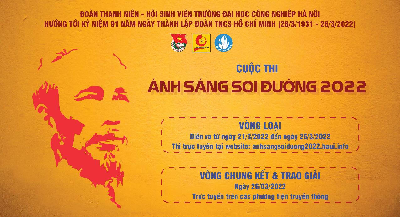 Cuộc thi Ánh sáng soi đường năm 2022 là một trong những hoạt động thiết thực và thường niên của tuổi trẻ Nhà trường. Với 2 vòng thi, Vòng 1 diễn ra từ ngày 21/03/2022 đến ngày 25/03/2022 và vòng chung kết vào ngày 26/03/2022.