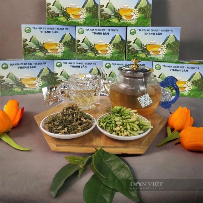 Sản phẩm trà hoa đu đủ đực - xạ đen tía của HTX Thanh Lâm ở Cẩm Khê, Phú Thọ. Ảnh: Mạnh Thuần