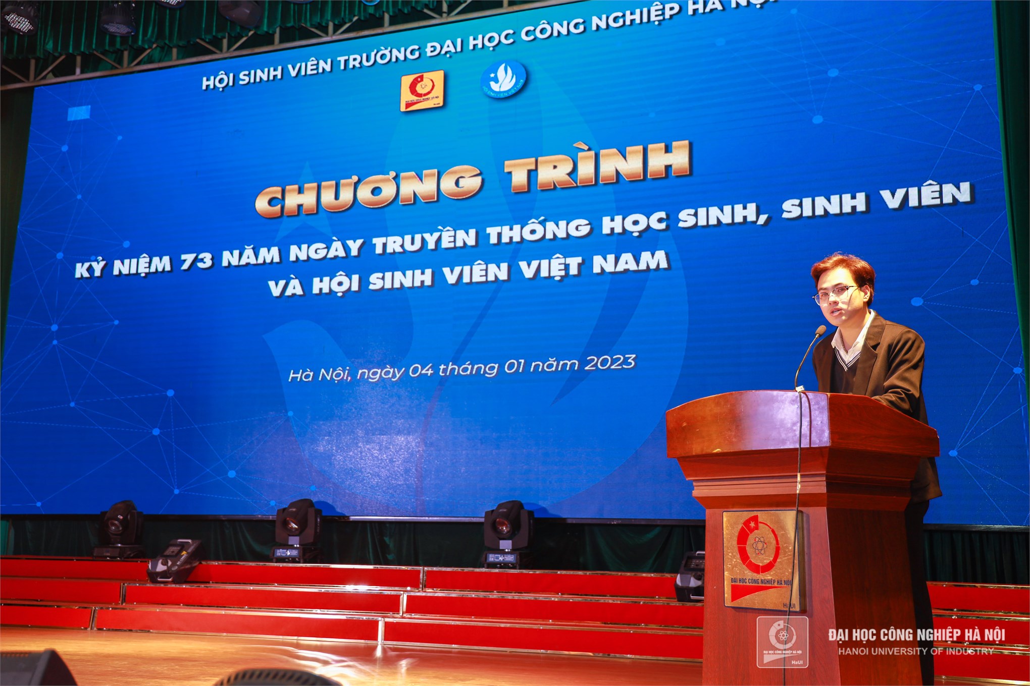 Chiều 04/01, Hội Sinh viên Trường Đại học Công nghiệp Hà Nội long trọng tổ chức Chương trình kỷ niệm 73 năm ngày truyền thống của học sinh, sinh viên Việt Nam, Hội Sinh viên Việt Nam (9/1/1950 - 9/1/2023) và tuyên dương Sinh viên 5 tốt năm học 2021 – 2022.
