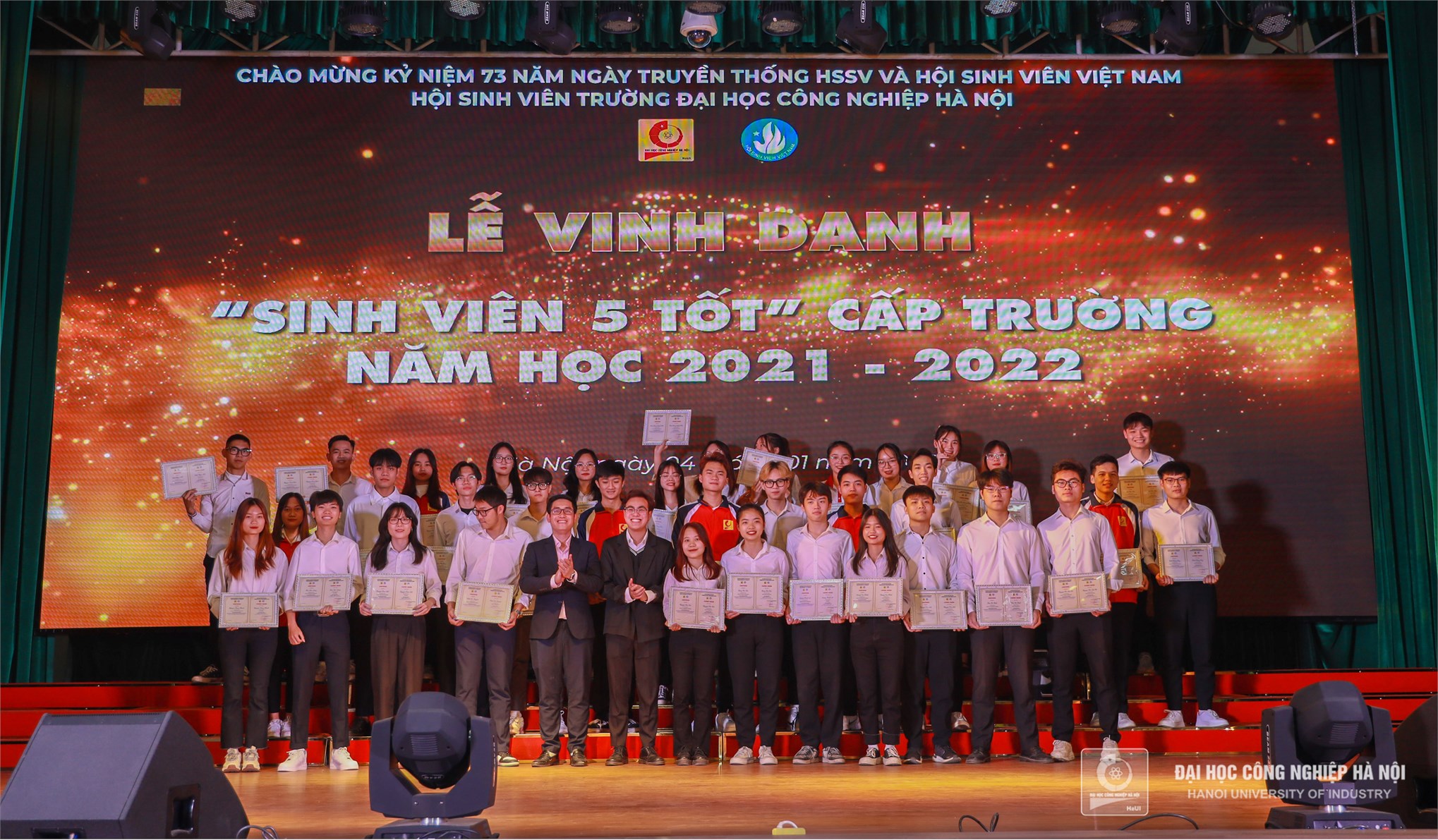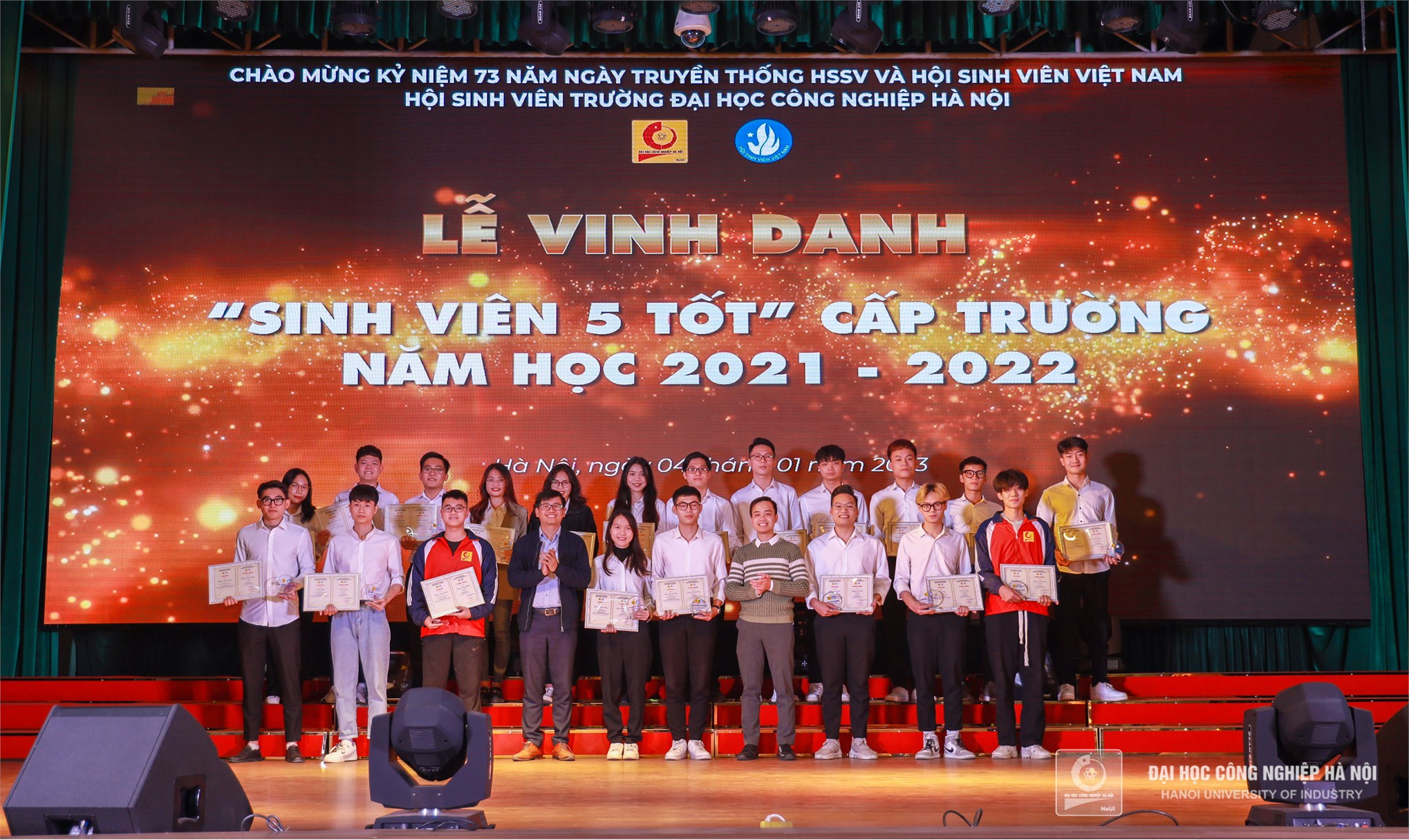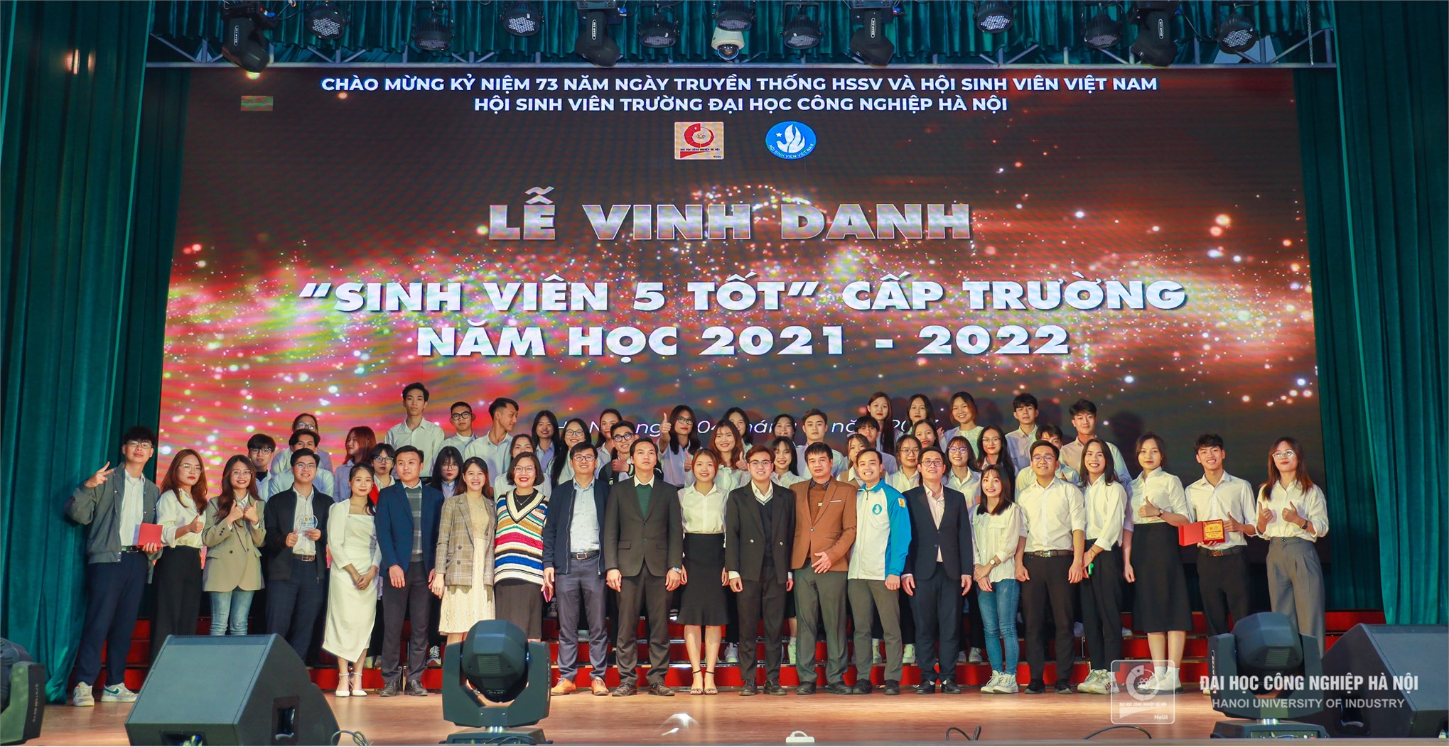 Trong khuôn khổ của Chương trình kỷ niệm, Hội Sinh viên trường đã tuyên dương 177 sinh viên 5 tốt cấp trường năm học 2021 – 2022 trong đó có 73 sinh viên 5 tốt cấp trường tiêu biểu. Đây là động lực để sinh viên tiếp tục tu dưỡng, rèn luyện và chinh phục hành trình tri thức của mình; đồng thời là minh chứng cho sự cố gắng và phát triển của sinh viên và Hội Sinh viên Trường Đại học Công nghiệp Hà Nội trong năm học vừa qua.