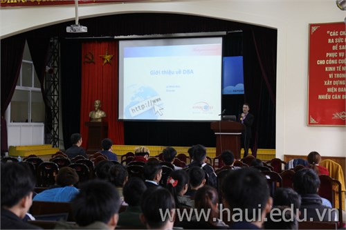 Sáng ngày 24/11/2016, Trường Đại học Công nghiệp Hà Nội phối hợp với Công ty CP Đầu tư Phát triển Công nghệ Ứng dụng Toàn cầu (Hyperlogy) tổ chức buổi hội thảo định hướng nghề nghiệp dành riêng cho các sinh viên đang theo học khối ngành công nghệ thông tin, điện tử tại trường.