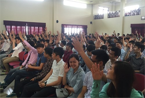 HSSV tham gia sôi nổi trước phần chia sẻ của diễn giả Tạ Minh Tuấn