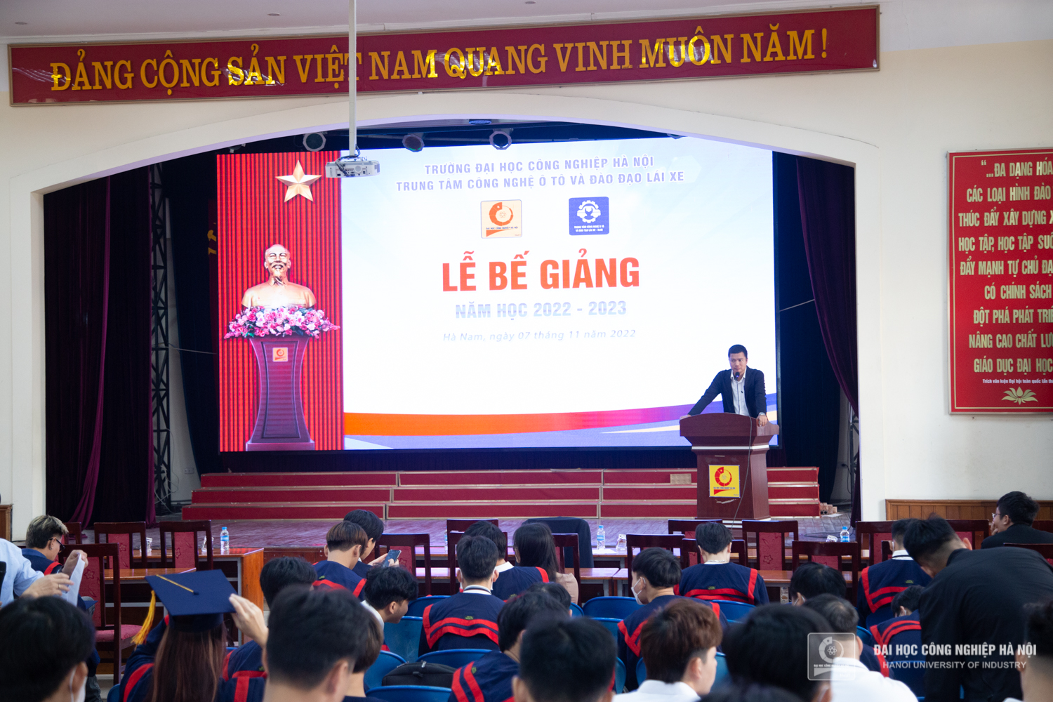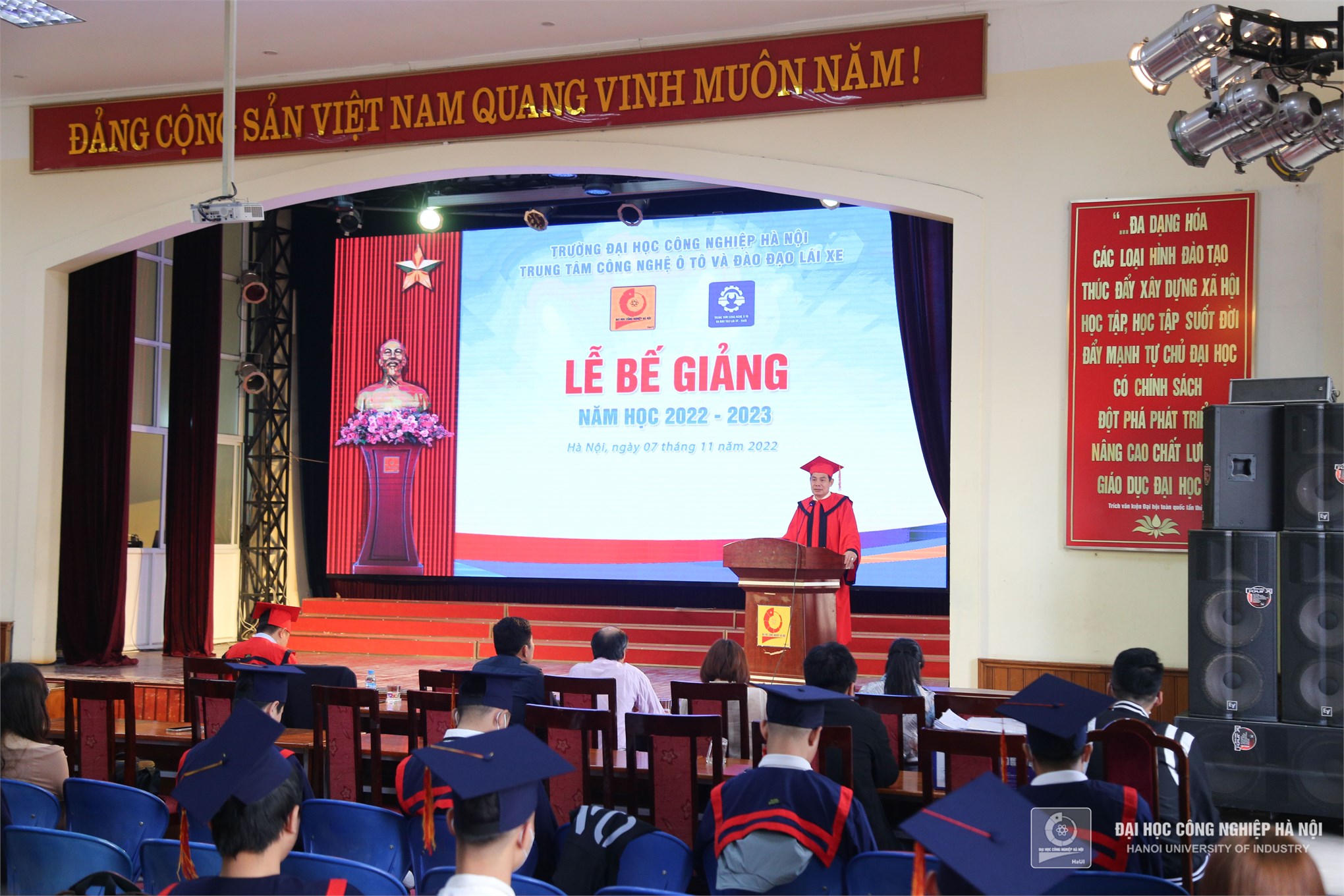 Phát biểu tại Lễ Bế giảng, PGS.TS.Nguyễn Tiến Hán – Giám đốc Trung tâm Công nghệ ô tô và đào tạo lái xe chúc mừng các tân kỹ sư thực hành đã tốt nghiệp ra trường, sau 3 năm học tập, rèn luyện tại nhà trường.