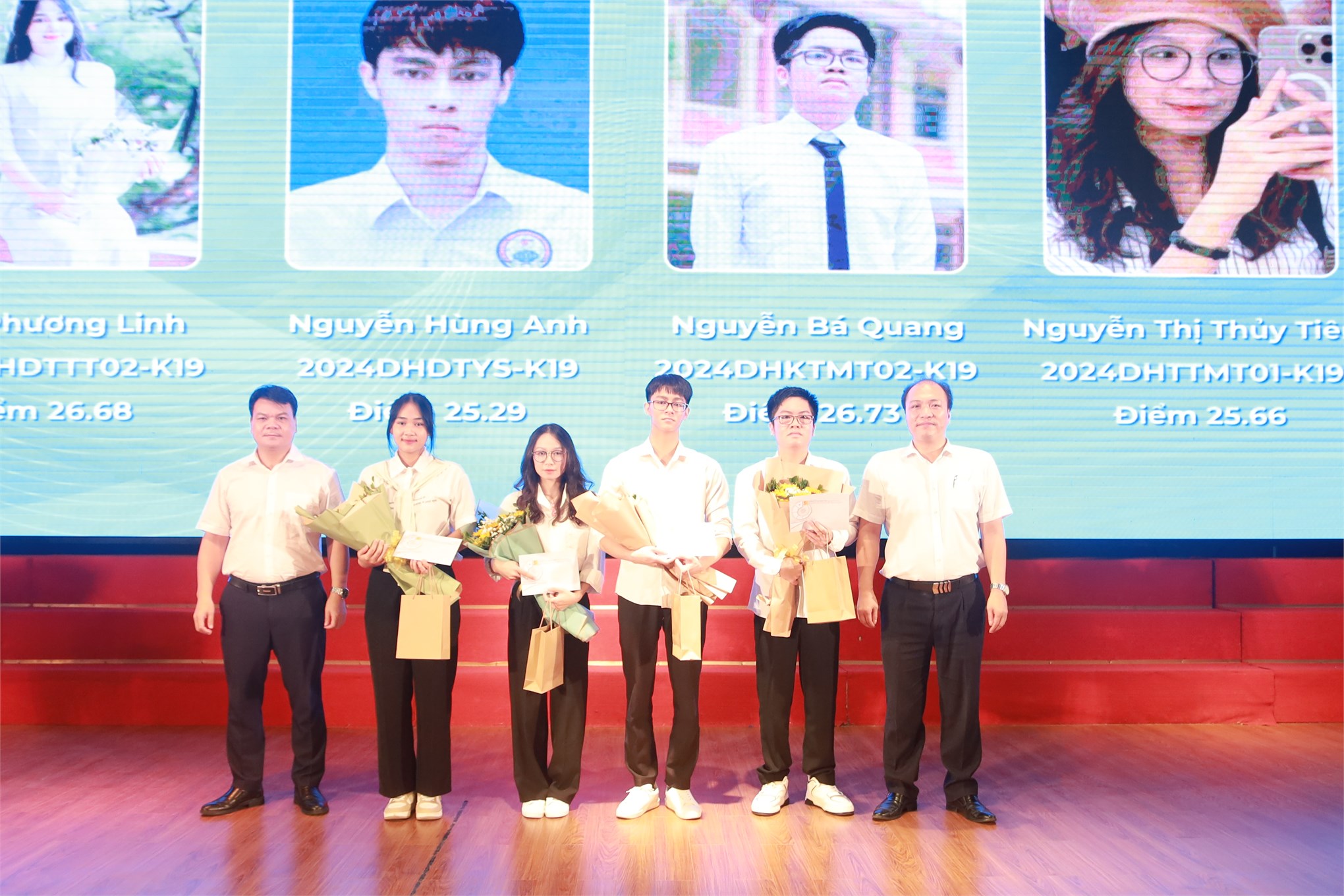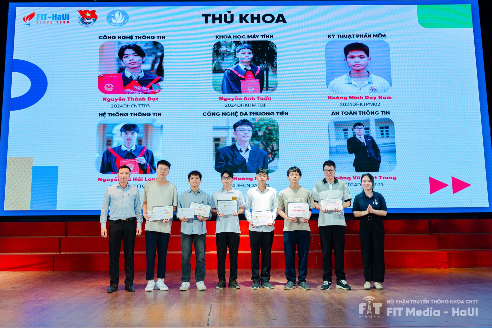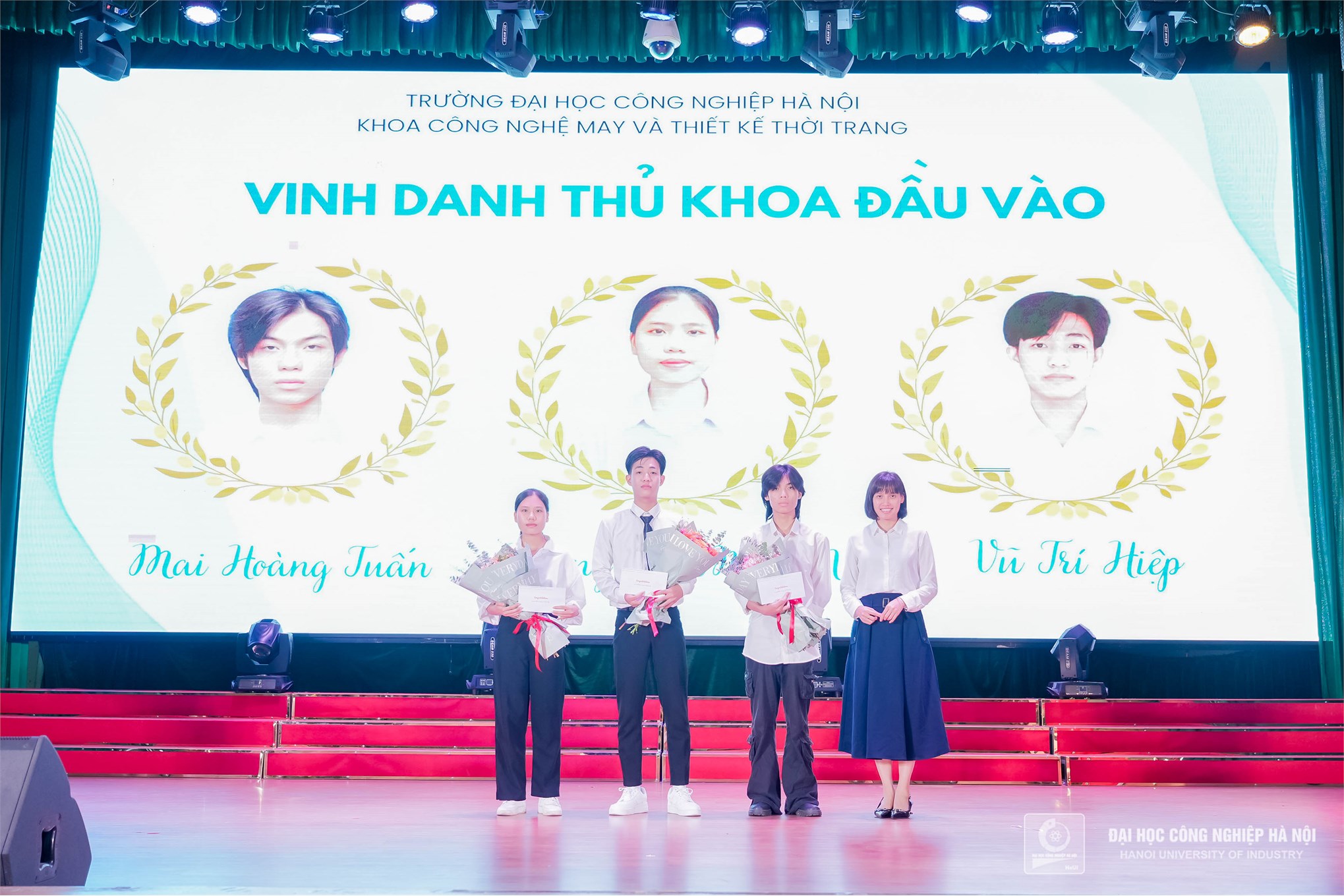 Vinh danh tân sinh viên xuất sắc là một trong những điểm nhấn của chương trình. Các bạn sinh viên thủ khoa đầu vào của trường trong kỳ thi tuyển sinh năm 2024 được trao thưởng, chúc mừng; được khích lệ, truyền lửa để các bạn trẻ viết tiếp ước mơ tại Đại học Công nghiệp Hà Nội.