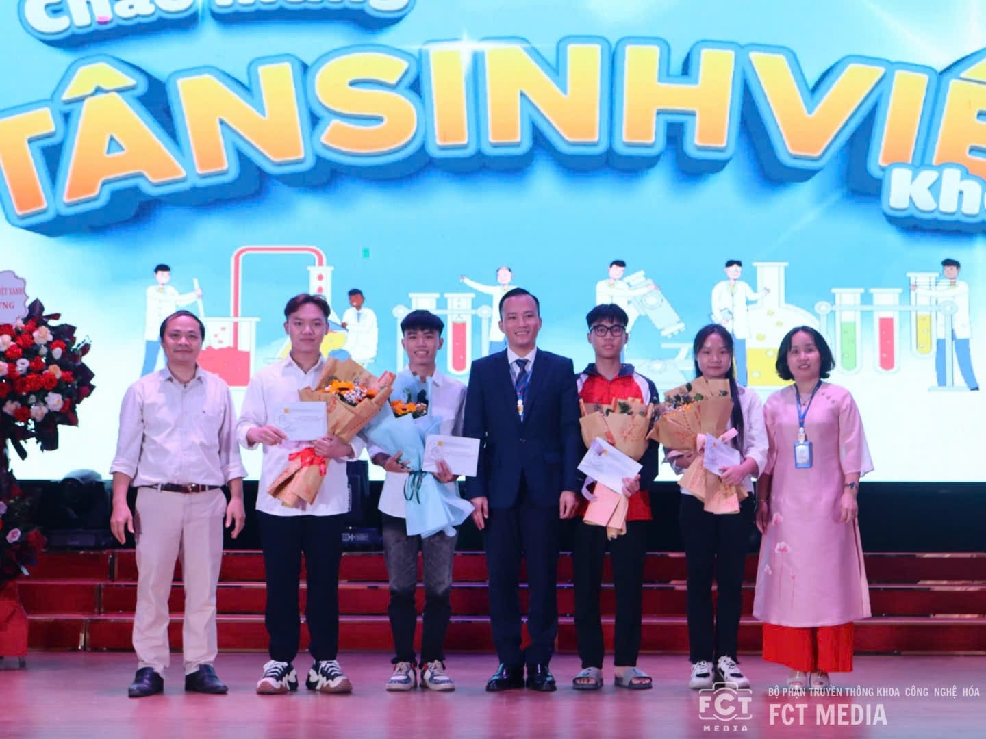 PGS.TS. Phạm Thị Mai Hương -Trưởng Khoa CN Hóa; PGS.TS. Nguyễn Thế Hữu, PGS.TS. Nguyễn Tuấn Anh – Phó trưởng khoa chúc mừng sinh viên thủ khoa mùa tuyển sinh 2024 của Khoa
