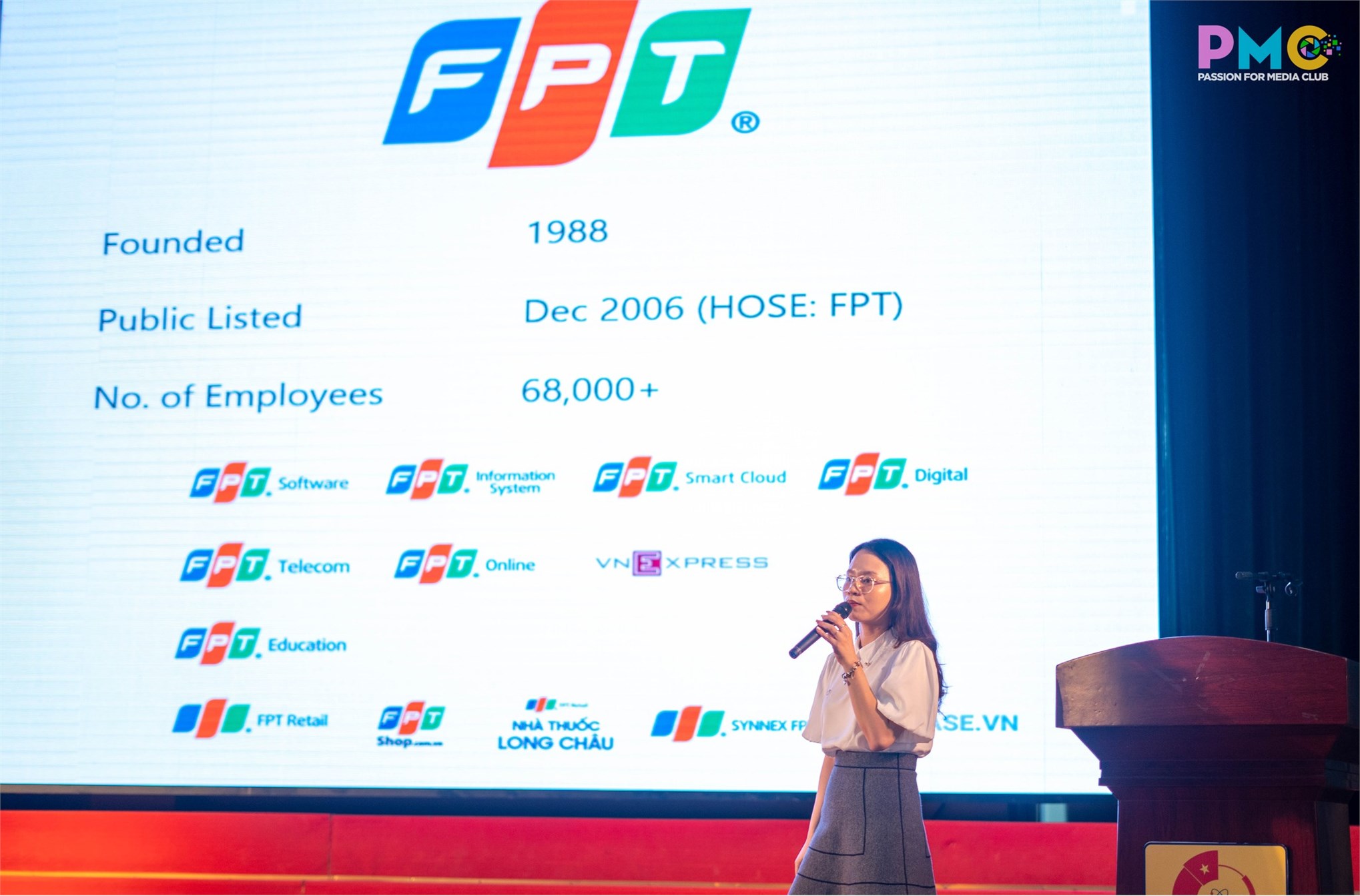 Chị Lê Thảo - Phó Phòng Tuyển dụng và thu hút nhân tài FPT Software Academy chia sẻ với sinh viên khoa Điện tử
