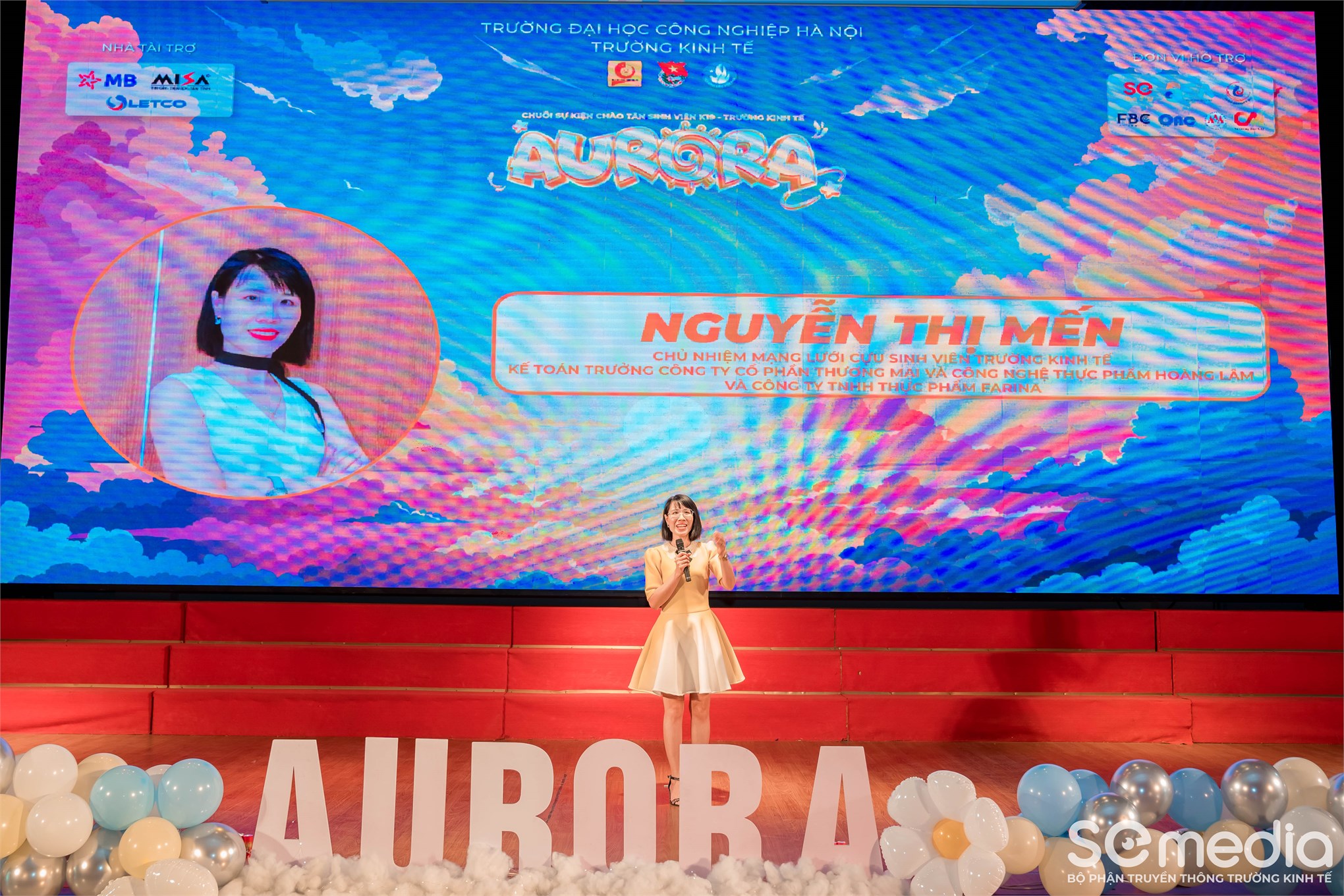 Cựu sinh viên Nguyễn Thị Mến chia sẻ tại Ngày hội Chào tân sinh viên Trường Kinh tế, HaUI